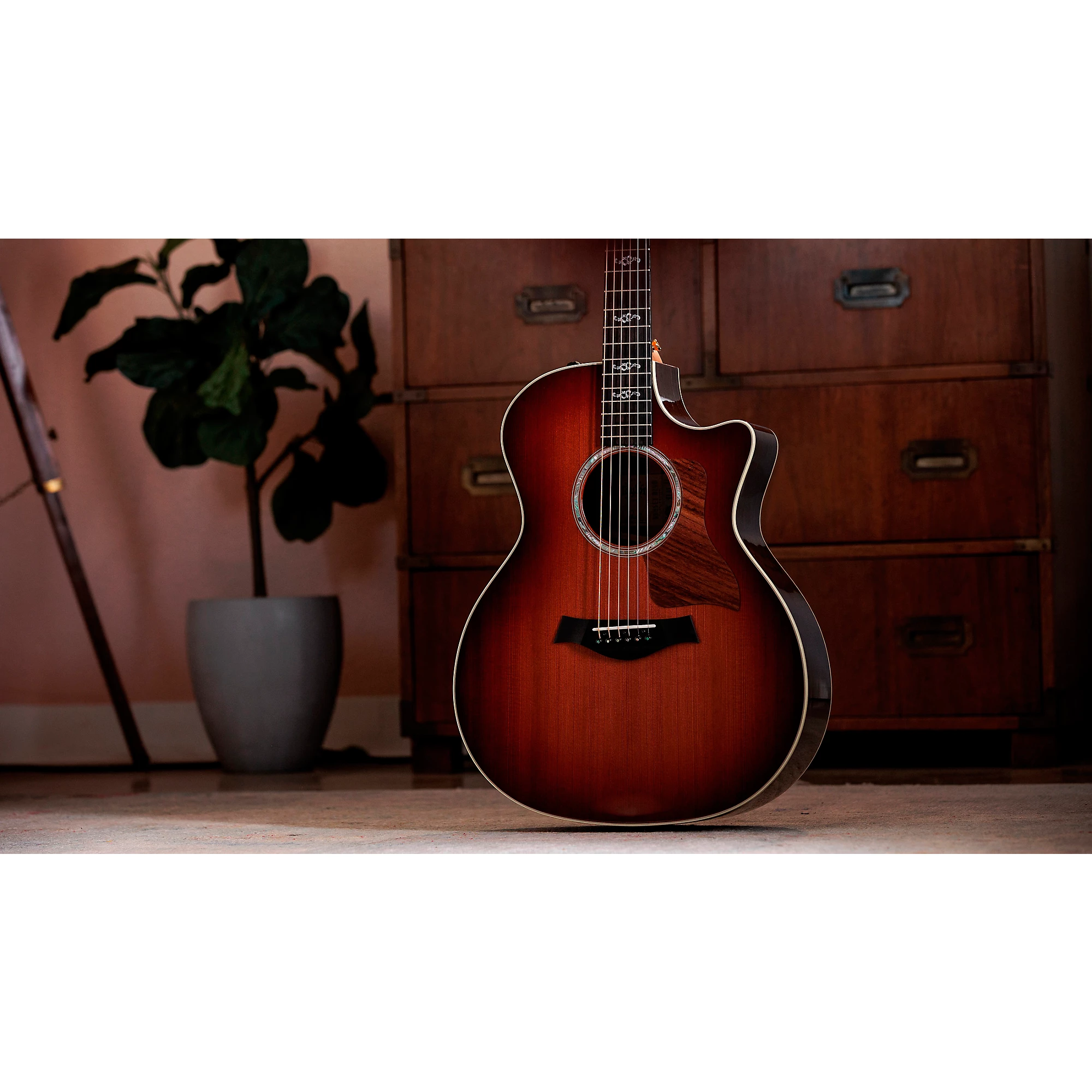 Акустико-электрическая гитара Taylor Sunset Blvd 714ce Grand Auditorium является праздником звучания, стиля и наследия - она создана в честь легендарного голливудского флагманского магазина Guitar Center. Эта лимитированная модель находится на пересечении звуковых инноваций и визуального искусства, объединяя признанное мастерство Taylor с эксклюзивными элементами, отдающими дань уважения одному из самых культовых музыкальных мест. Цельная дека из красного дерева и цельные задняя дека и корпус из индийского розового дерева формируют тональную основу, обеспечивая богатый, выразительный и невероятно динамичный звук. Корпус Grand Auditorium обеспечивает универсальность в использовании, а система струнного каркаса V-Class улучшает сустейн и гармоническую ясность.