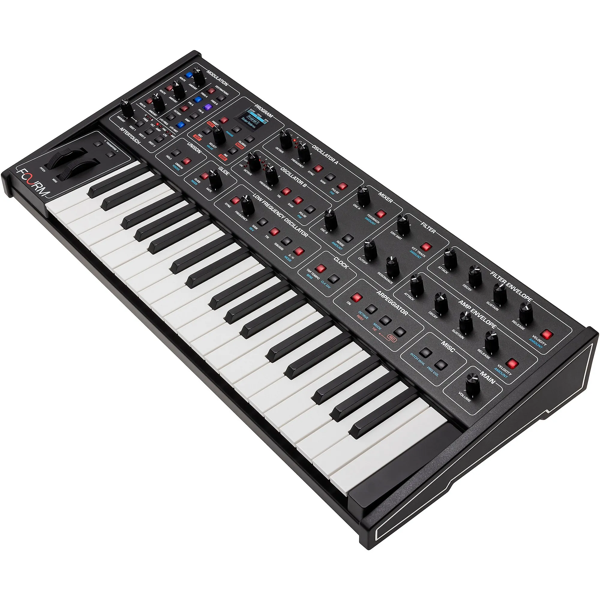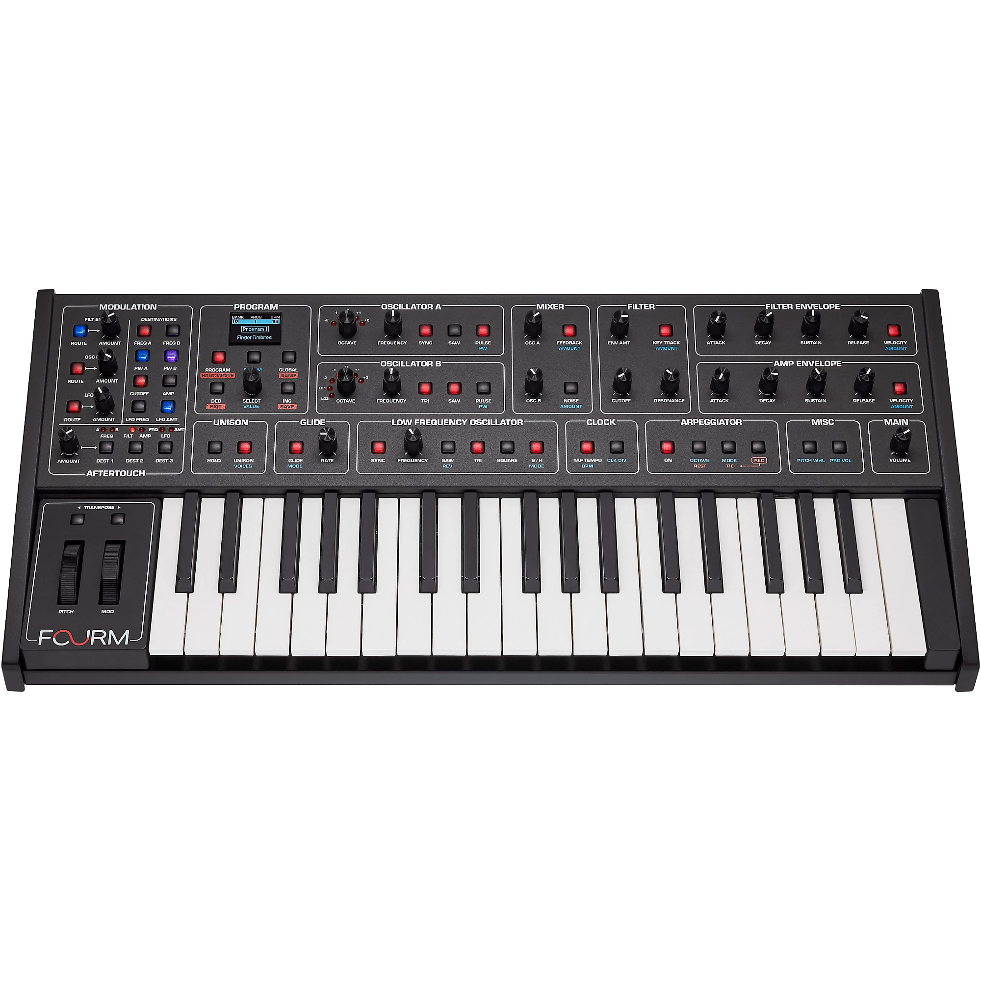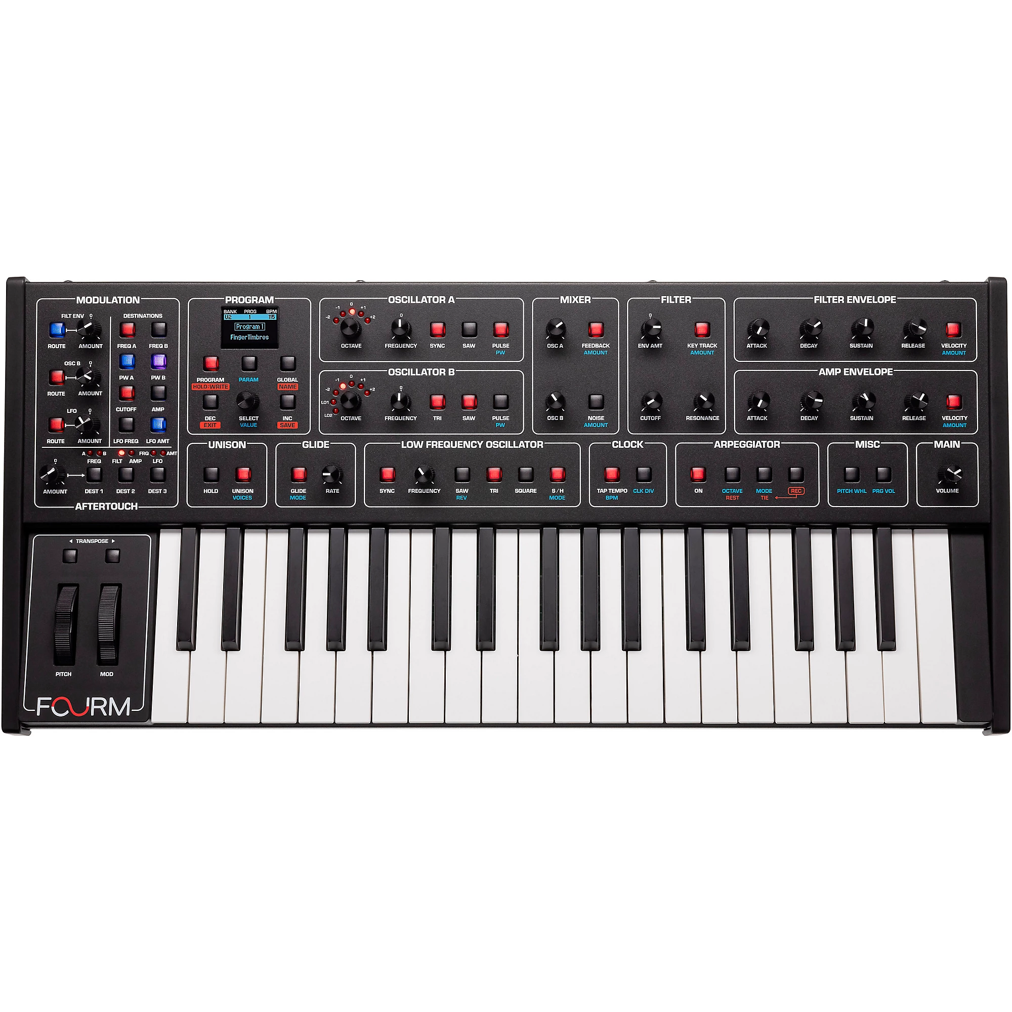 Технические характеристики компактного полифонического аналогового синтезатора Fourm:
