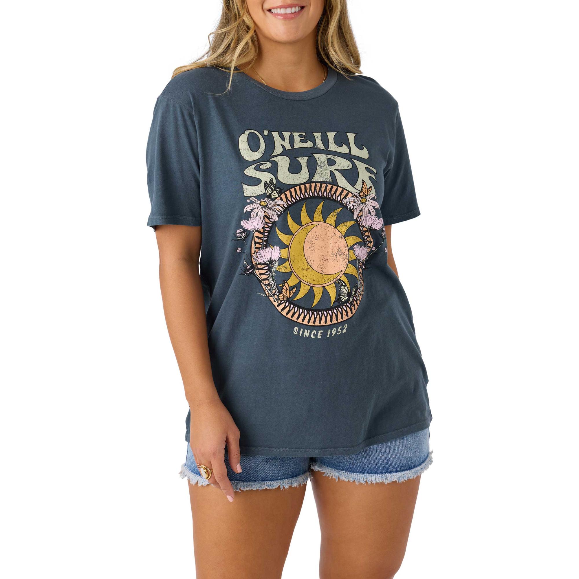 Бренд: O'Neill Цвет: Slate Женская футболка O'Neill Daystar - это идеальное сочетание стиля и комфорта, созданное для тех, кто с удовольствием проводит время на природе. Эта очаровательная футболка свободного кроя с графическим принтом, длиной 27,5 дюймов, обеспечивает свободу движений как во время похода по тропе, так и в солнечный день на пляже. Изготовленная из мягкого высококачественного хлопка, эта футболка уютная и дышащая, что делает ее незаменимым дополнением к летнему гардеробу. Окраска ткани пигментами придает ей уникальный винтажный оттенок, а яркий принт демонстрирует дизайн, воспевающий приключения и веселье. Идеально подходящая для любителей активного отдыха, эта футболка не только сочетает элегантность с повседневной одеждой, но и служит отличным вариантом для многослойной одежды в прохладные вечера. Женская футболка O'Neill Daystar, безусловно, лучший выбор для активных женщин, которые хотят оставаться стильными, наслаждаясь временем на природе.
