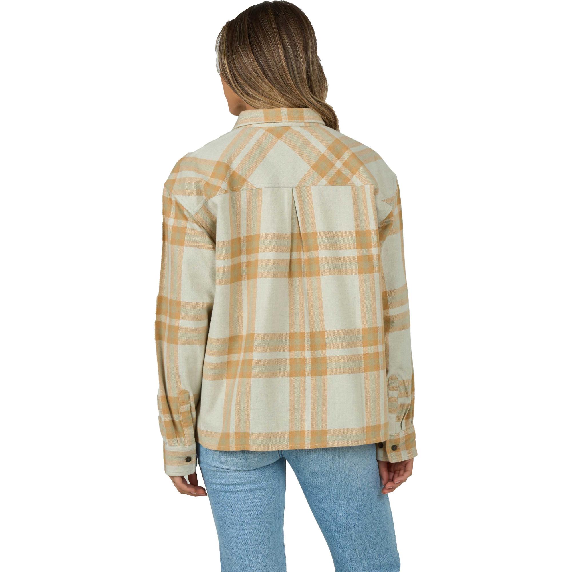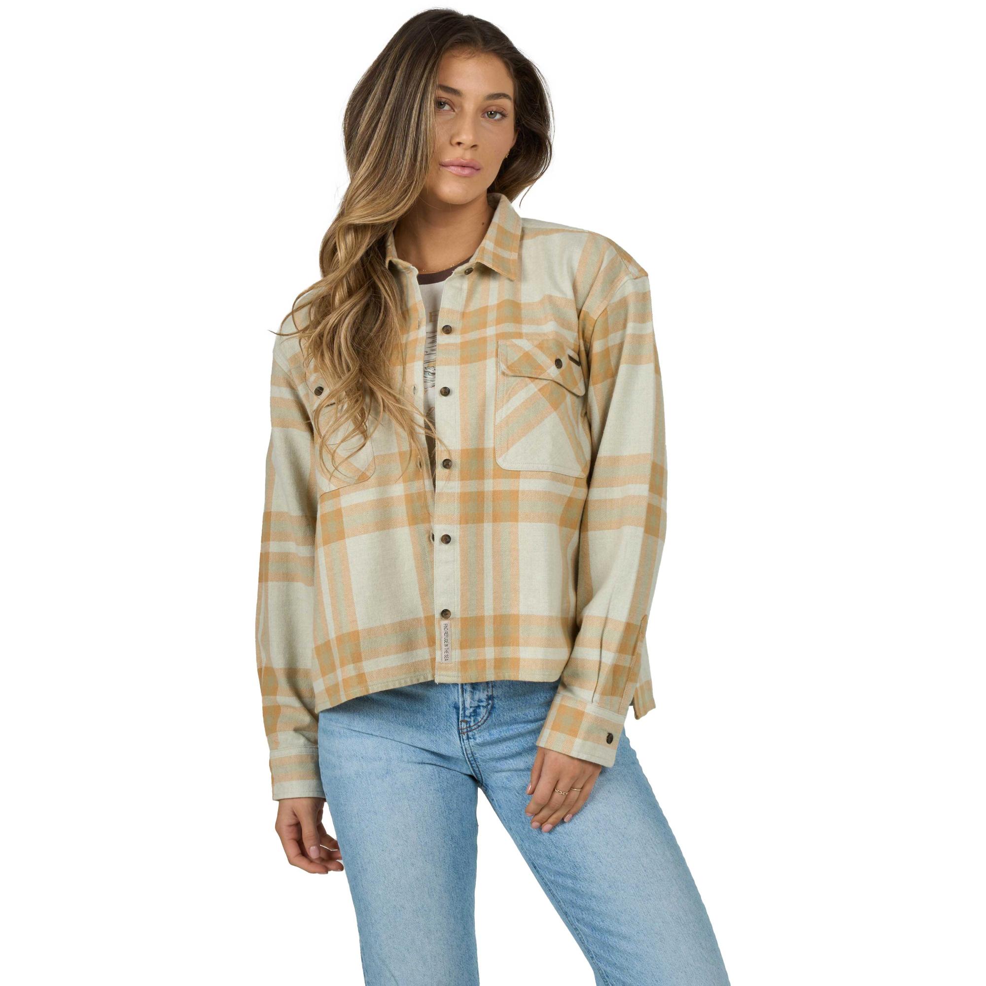 Бренд: Salty Crew Цвет: Sand Женская фланелевая рубашка Salty Crew Nomad - это уютная рубашка свободного кроя, созданная для спокойных дней и прохладных вечеров. Изготовленная из 100% хлопковой фланели, она обеспечивает мягкость, воздухопроницаемость и прочность. Свободный крой идеально сочетается с леггинсами или джинсами, а асимметричный низ и боковой разрез создают привлекательный силуэт. Функциональные нагрудные карманы с застежкой на пуговицы и регулируемые манжеты рукавов делают ее практичной, а складка на кокетке сзади повышает свободу движений. Завершает образ металлический логотип на нагрудном кармане. Эта фланелевая рубашка сочетает в себе повседневный комфорт и фирменный стиль Salty Crew.