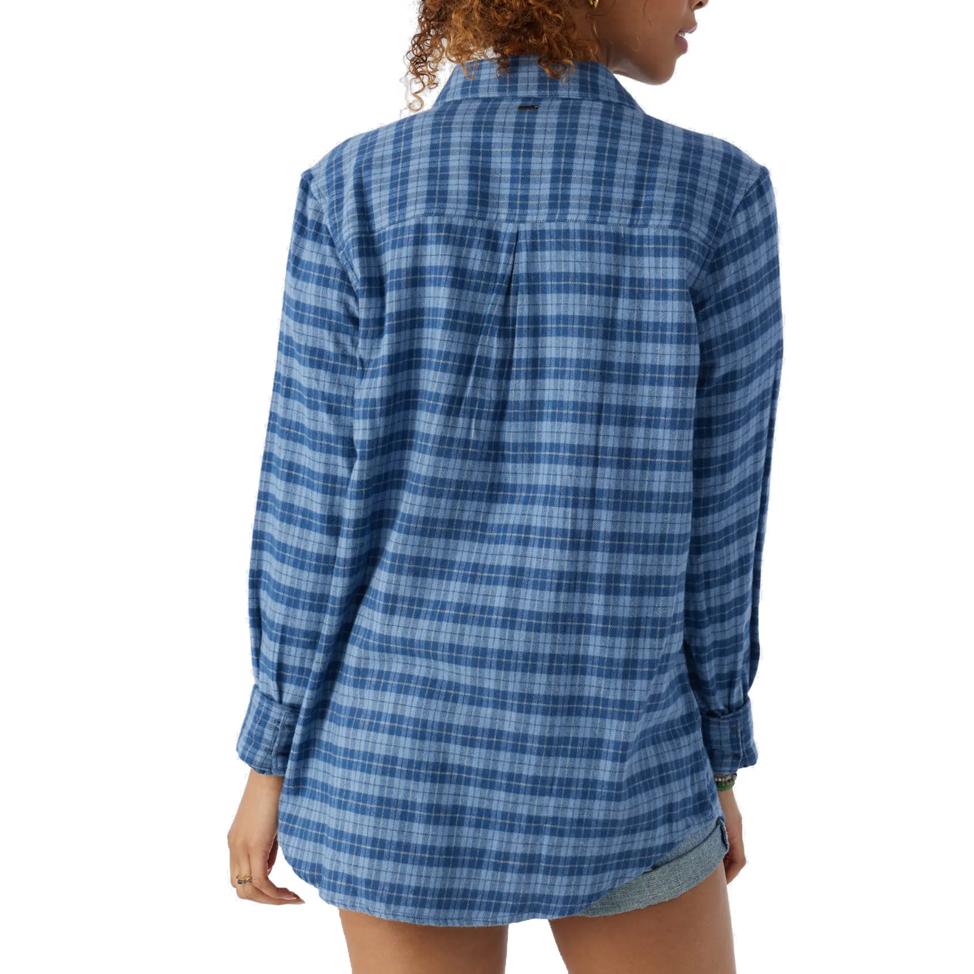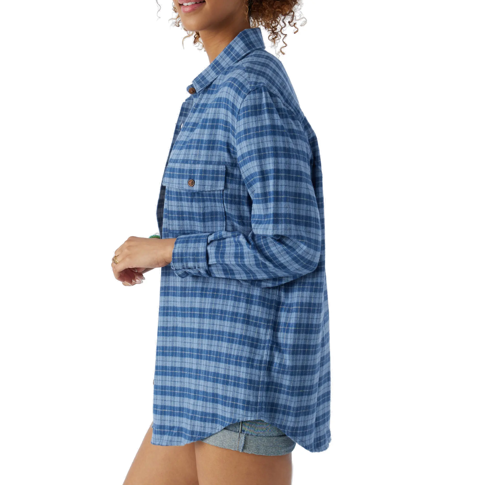 Бренд: O'Neill Цвет: Classic Blue Женская рубашка O'Neill Brooks идеально подходит для тех, кто предпочитает непринужденный стиль и ищет стильную осеннюю вещь для своего гардероба. Эта рубашка изготовлена из мягкой хлопковой фланели, которая удобна и легко сочетается с летним/осенним стилем. Она имеет эластичный пояс внутри и застежку на пуговицы спереди для удобства надевания и снимания. Женская рубашка O'Neill Brooks станет вашей любимой вещью, с которой вы будете создавать разнообразные образы на протяжении всего сезона!