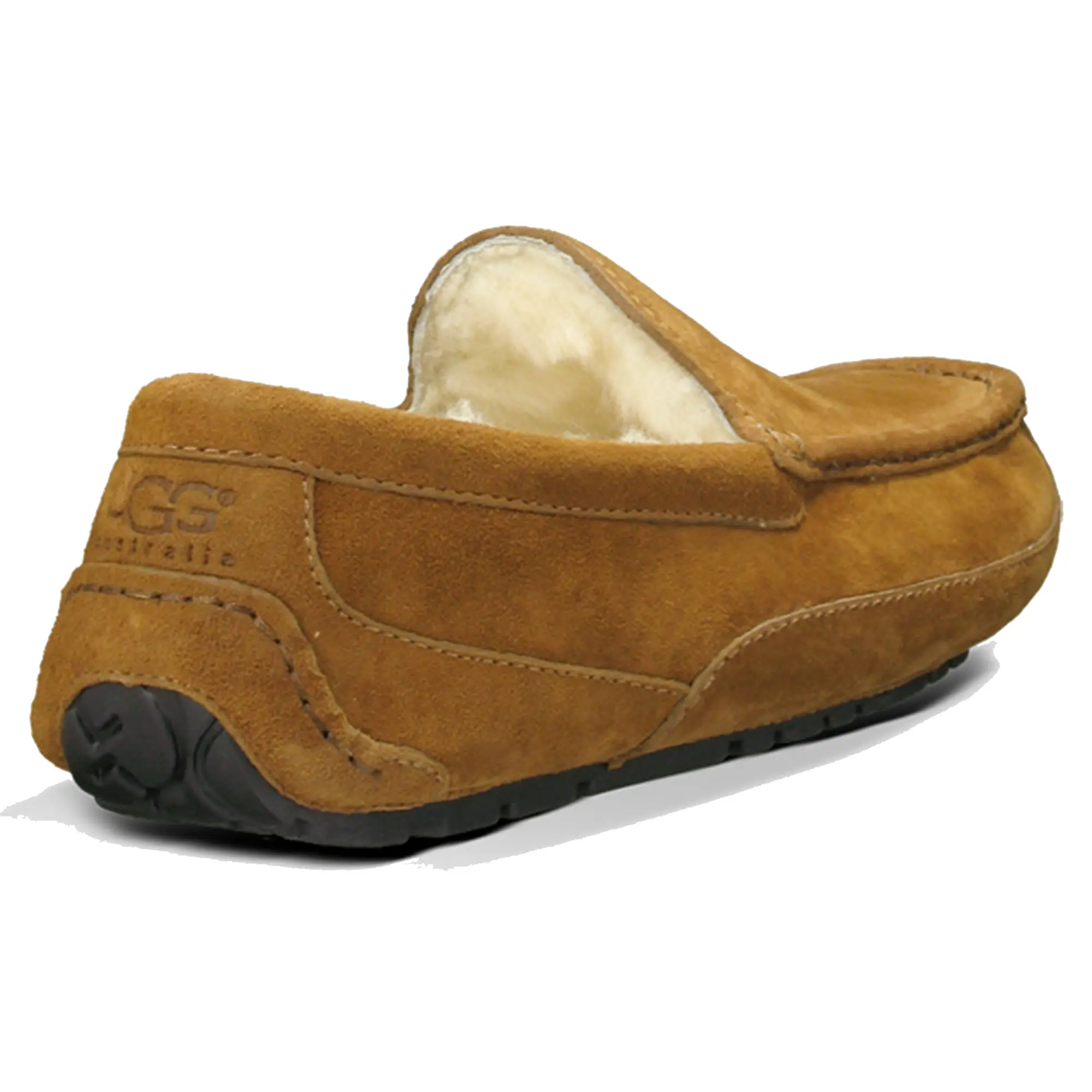 Бренд: UGG Цвет: Chestnut Мужские тапочки UGG Ascot сочетают в себе внешний вид лоферов и мягкость домашних тапочек, что делает их вашей новой любимой обувью. Резиновая подошва позволяет носить их как дома, так и на улице, поэтому вы можете надеть их утром дома, на выходные или в офис в неформальной обстановке. Тапочки Ascot были изготовлены на фабрике, которая поддерживает женщин в цепочке поставок UGG с помощью HERproject - совместной инициативы, создающей партнерства с брендами для расширения прав и возможностей и обучения женщин на рабочем месте. Мужские тапочки UGG Ascot станут вашей любимой парой на все времена!