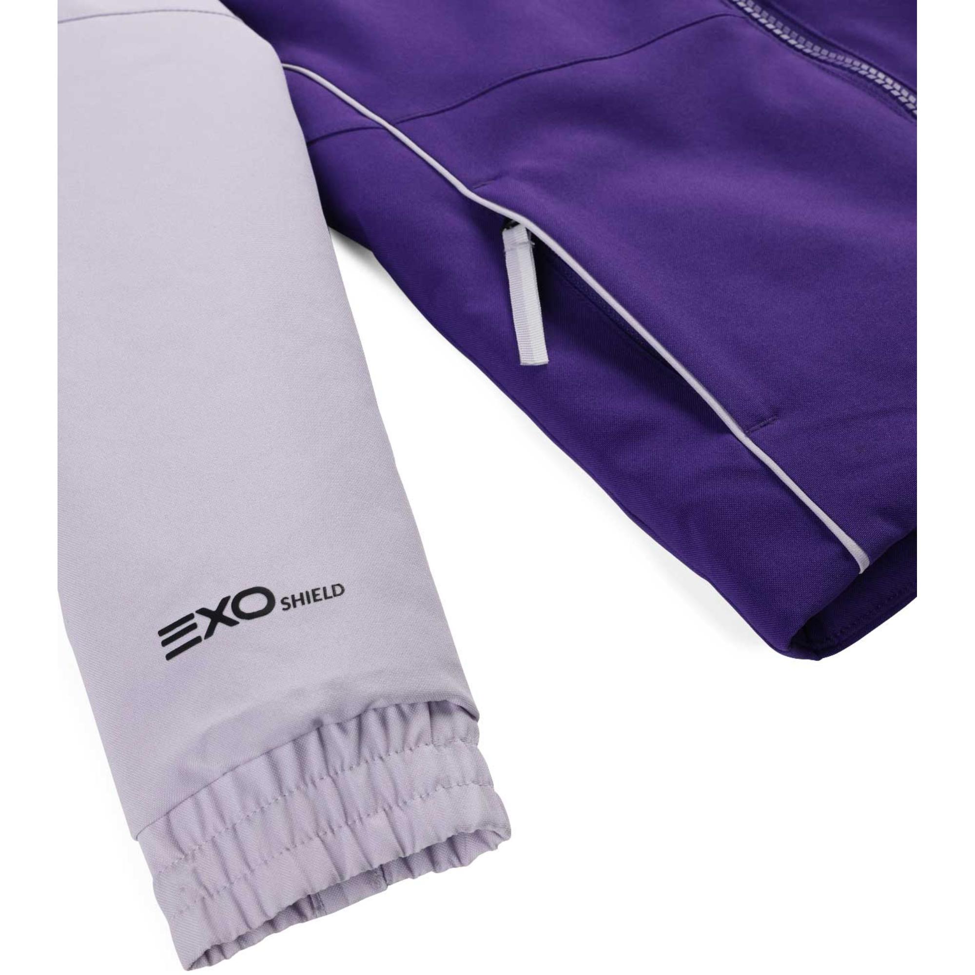 • Водонепроницаемая и дышащая защита - ткань EXO SHIELD обеспечивает водонепроницаемость 10K и воздухопроницаемость 10K, чтобы юные лыжники оставались сухими и чувствовали себя комфортно.