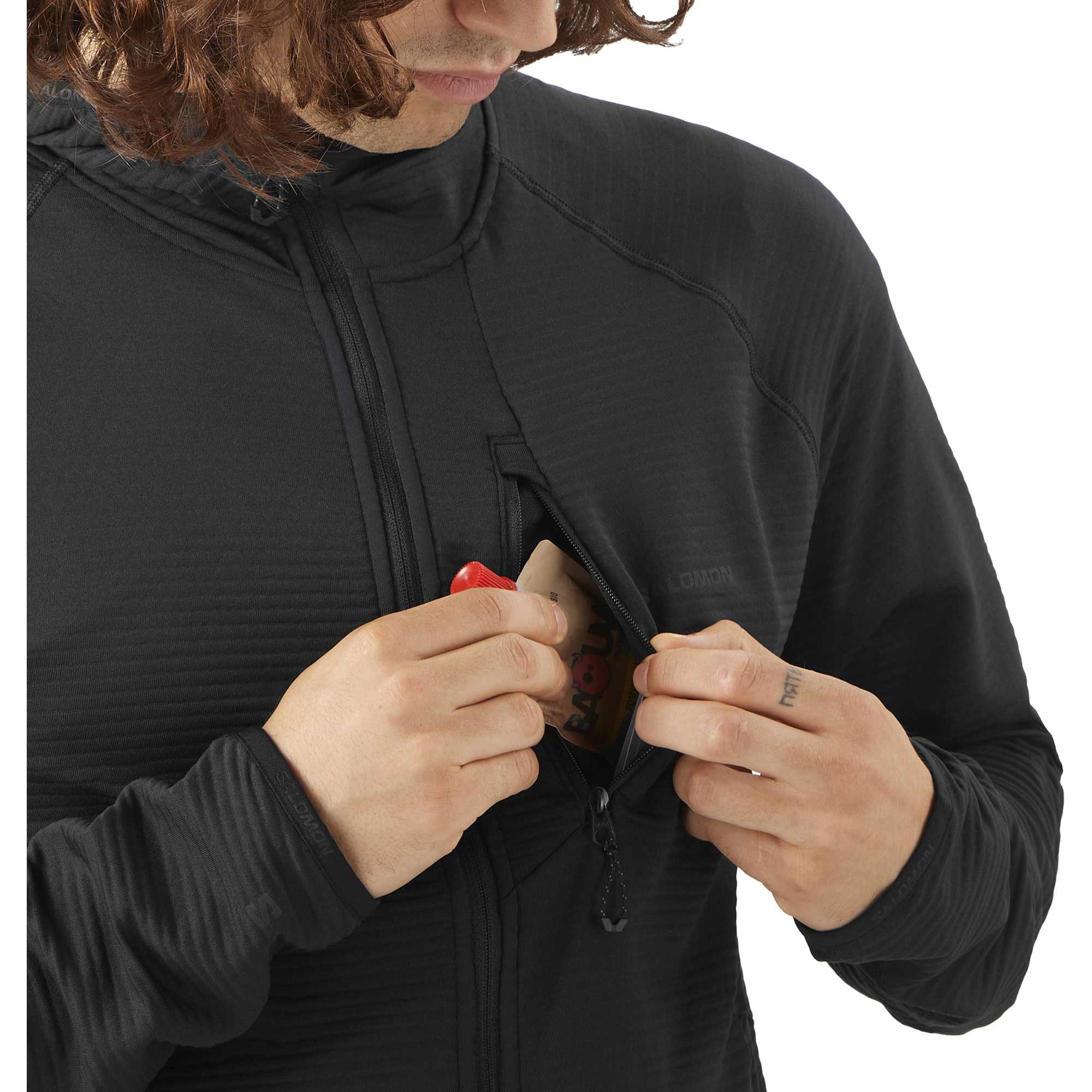 Бренд: Salomon Цвет: Deep Black Куртка Essential Lightwarm - ваш незаменимый промежуточный слой для приключений в любое время года, от походов в горы до поездок на работу в прохладную погоду. Легкая, но удивительно теплая, она сочетает в себе теплоизоляцию и воздухопроницаемость, поэтому вы будете чувствовать себя уютно, не перегреваясь. Изготовленная из эластичной ткани, растягивающейся в четырех направлениях, она легко двигается вместе с телом, что делает ее идеальным дополнением для ношения под верхней одеждой или самостоятельно. Удобные детали, такие как карманы на молнии, несъемный капюшон и обработанные манжеты, обеспечивают функциональность и обтекаемость. Будь вы в горах, в лесу или в городе, куртка Essential Lightwarm обеспечит вам комфорт, свободу движений и готовность ко всему, что принесет день.