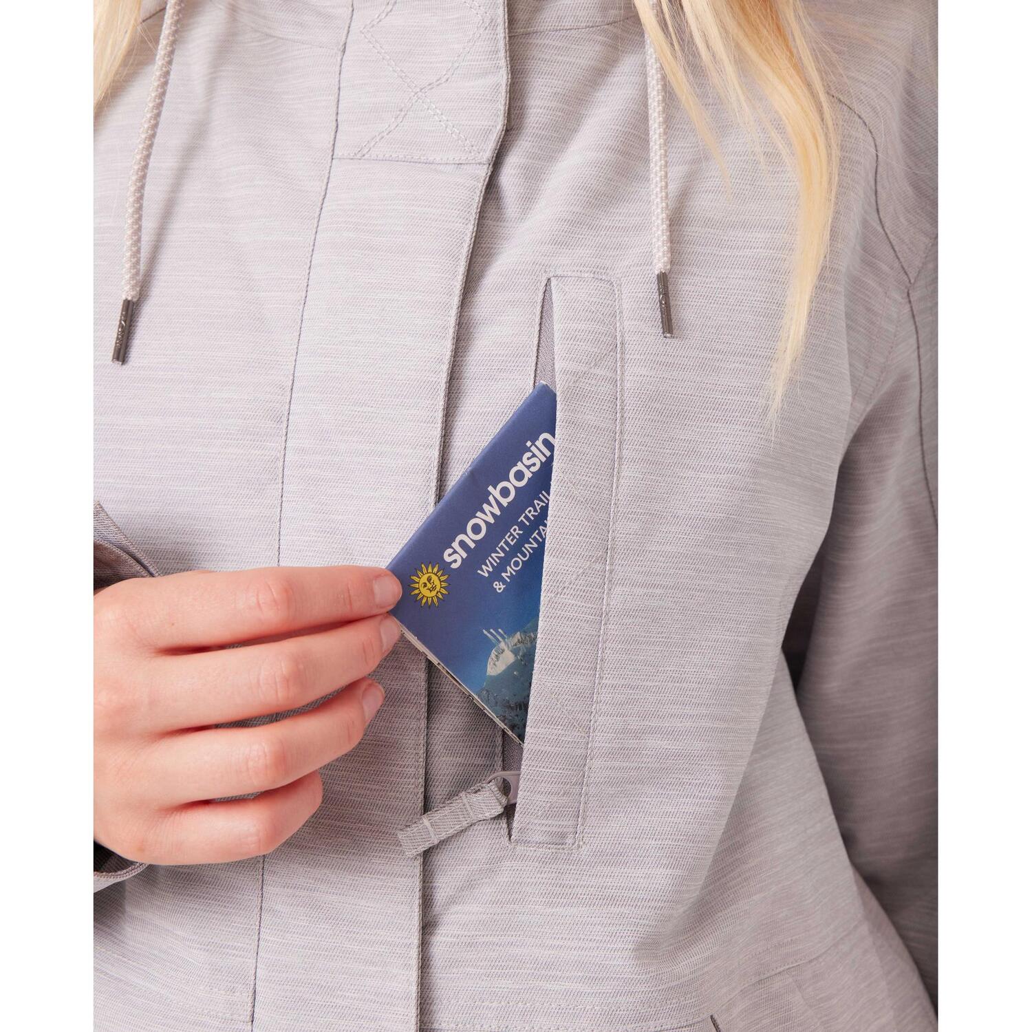 - Множество карманов - Включает карманы для согревания рук, нагрудный карман, карман для медиаустройств, карман для очков и карман на рукаве для хранения снаряжения, готового к использованию в горах.
