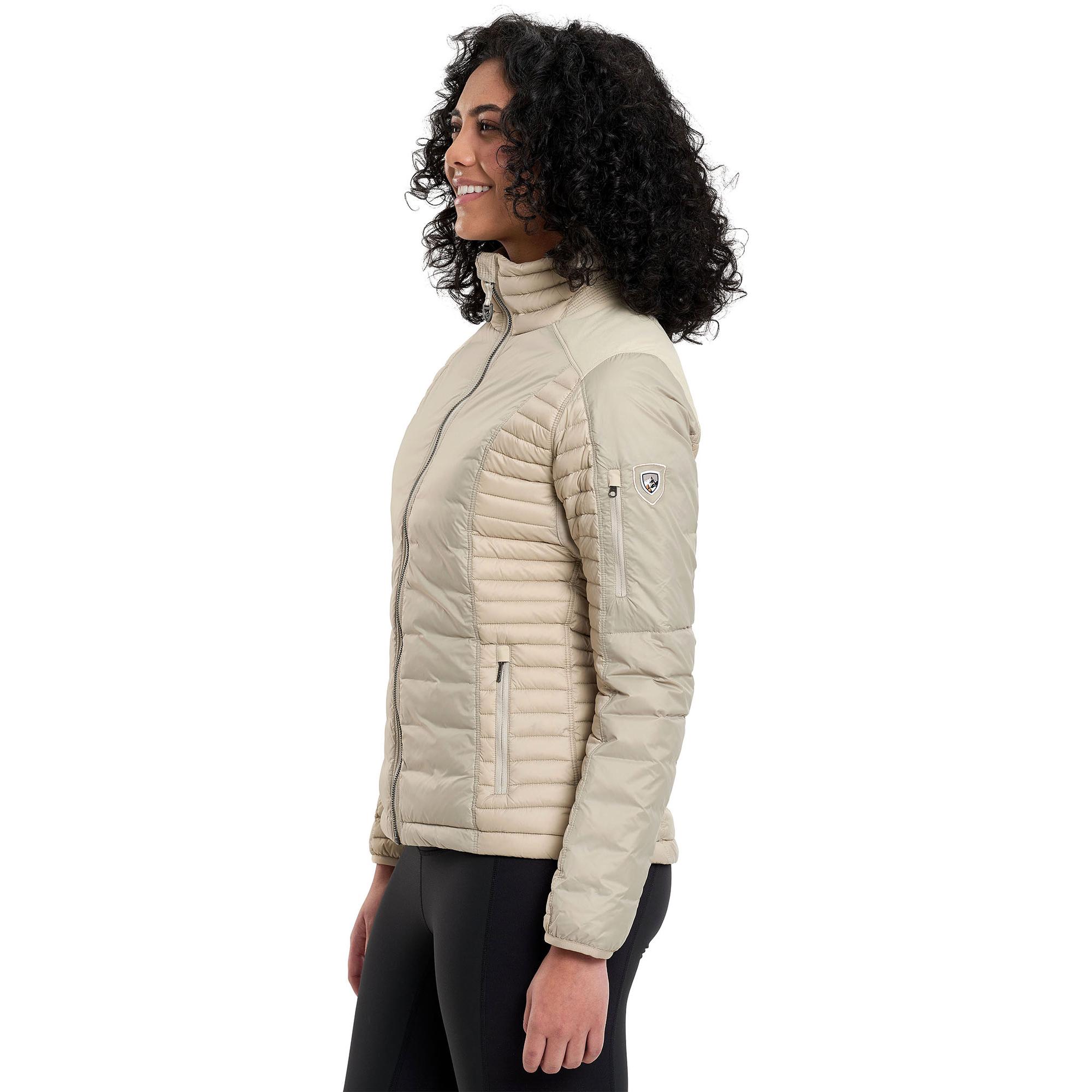 - Пуховый утеплитель - гусиный пух плотностью 800 наполнителя, сертифицированный по стандарту RDS, обеспечивает тепло в области корпуса с минимальным объемом.