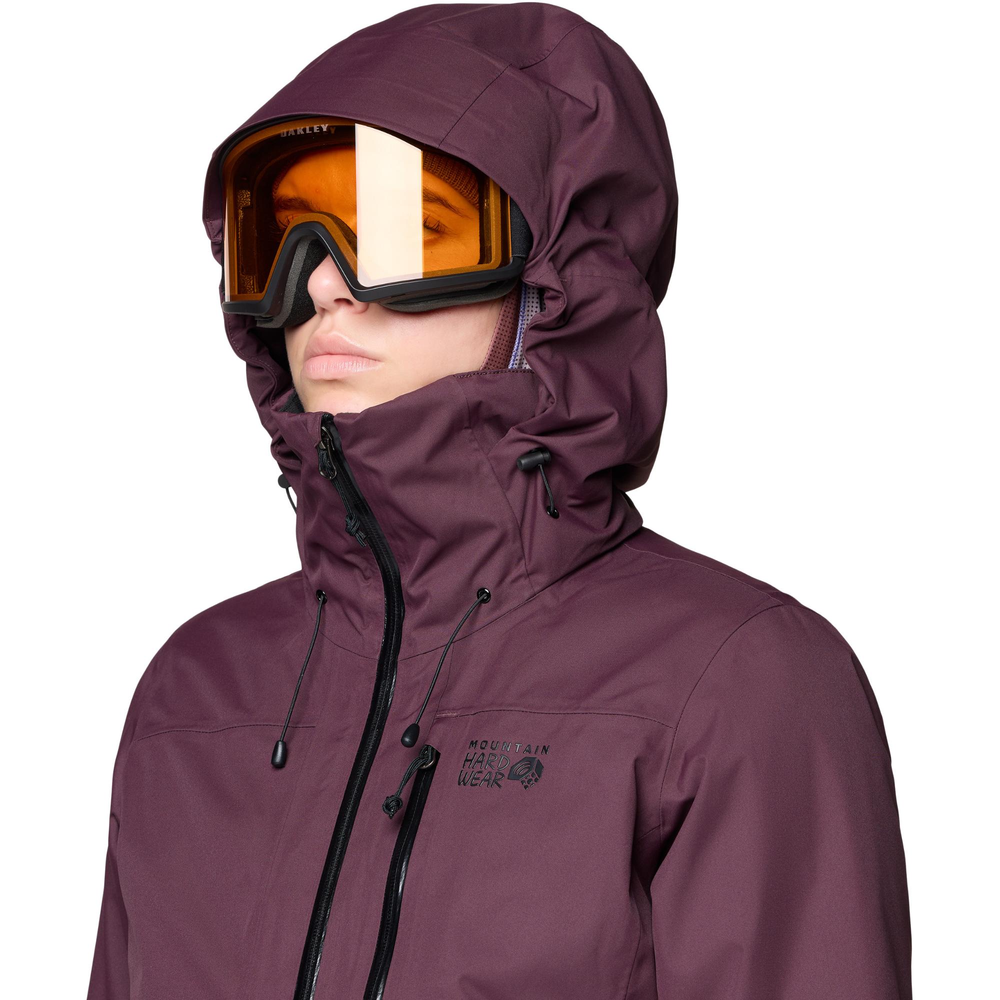 - Капюшон, совместимый со шлемом - Регулируемый капюшон на трехсторонней затяжке предназначен для ношения поверх шлема, не пропуская холодный воздух и снег
