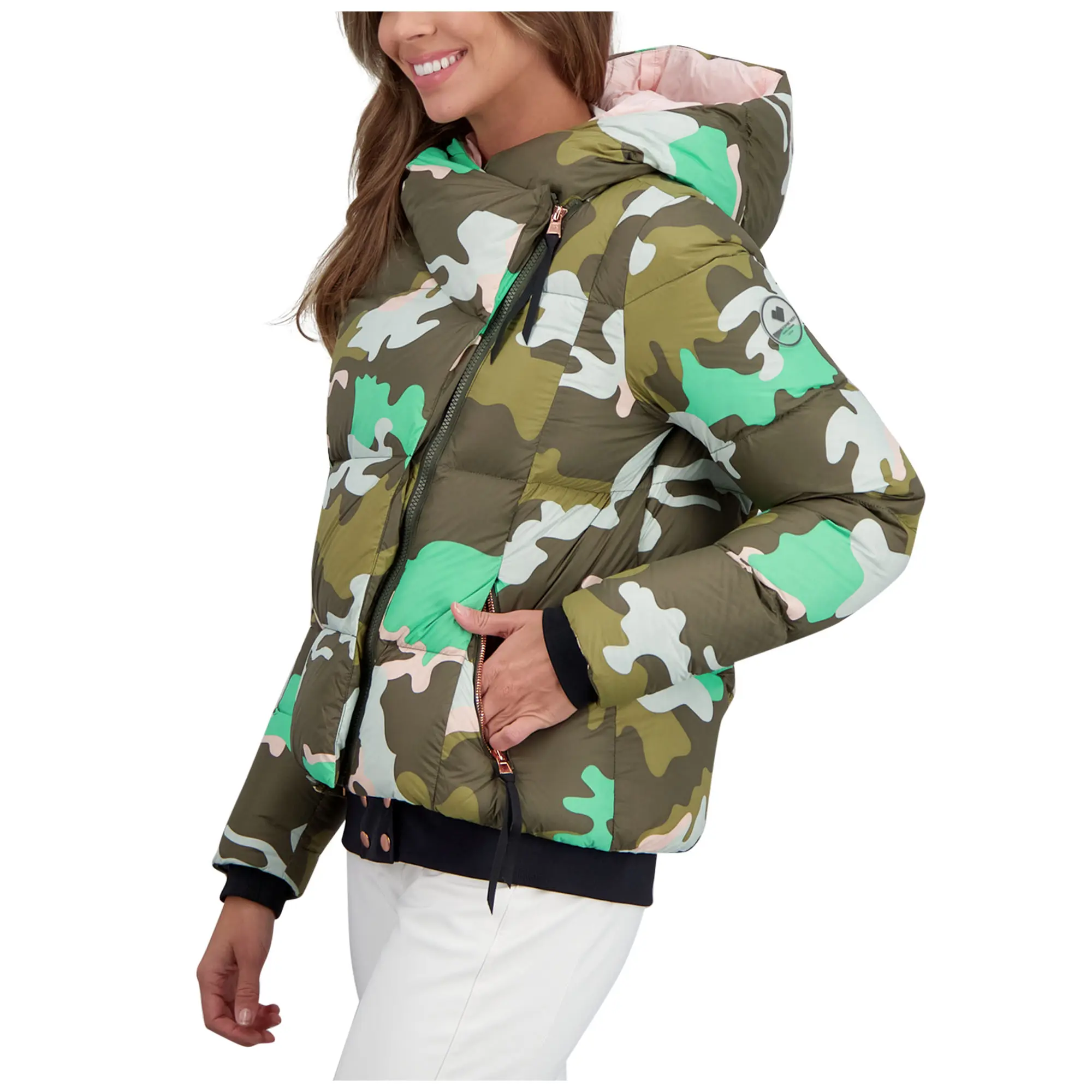 Бренд: Obermeyer Цвет: Jasmint Camo Женская пуховая куртка Obermeyer Calypso изготовлена из мягких тканей и теплого пуха. Эта куртка словно ваше любимое одеяло, в котором вы можете чувствовать себя уютно и тепло весь день. Она имеет съемный водоотталкивающий трикотажный подол, который служит снегозащитной юбкой, а также добавляет 7,5 см длины. Снимите снегозащитную юбку для прогулок по городу, чтобы куртка выглядела более короткой и лучше сидела по фигуре. Тепло обеспечивается утеплителем из утиного пуха Allied Feather and Down с показателем упругости 700 Fill Power, полученным из ответственных источников. Женская пуховая куртка Obermeyer Calypso идеально подходит для зимнего стиля и отвечает техническим требованиям.