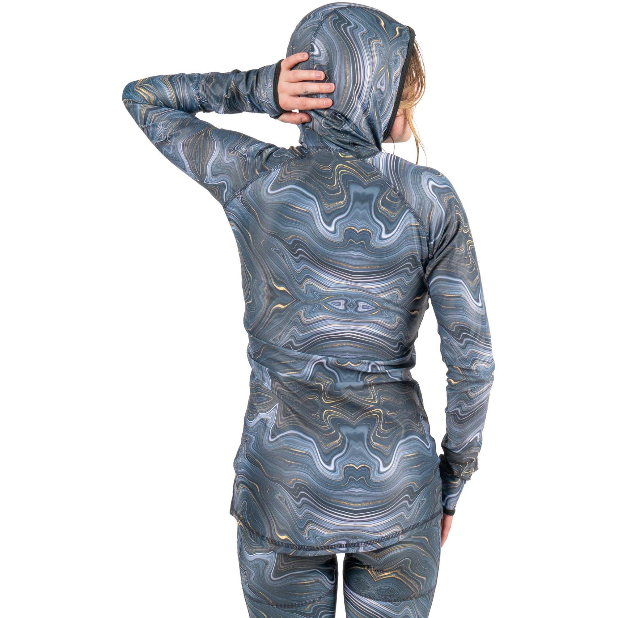 Женская толстовка Blackstrap Summit Base Layer Hoodie - идеальный спутник для приключений на свежем воздухе, готовый принять все, что могут предложить горы. Изготовленная из двухслойной ткани, эта толстовка эффективно сохраняет тепло, обеспечивая при этом необходимую циркуляцию воздуха, гарантируя комфорт от первого подъема на подъемнике до последнего спуска дня. Дополнительные удобства в виде отверстий для больших пальцев надежно фиксируют рукава, а влагоотводящие свойства предотвращают попадание влаги, что делает ее идеальной для активного отдыха. Невероятно мягкая ткань повышает комфорт, поэтому обладательницы могут чувствовать себя уютно, будь то катание на лыжах, сноуборде или просто бодрящая прогулка. Толстовка Summit Hoodie выделяется отличной воздухопроницаемостью для комфорта в течение всего дня, влагоотводящими свойствами для сухости и стильным дизайном, позволяющим любителям активного отдыха выглядеть хорошо независимо от вида деятельности. Эта толстовка особенно идеально подходит для тех, кто хочет наслаждаться временем, проведенным на природе, не жертвуя комфортом или стилем.