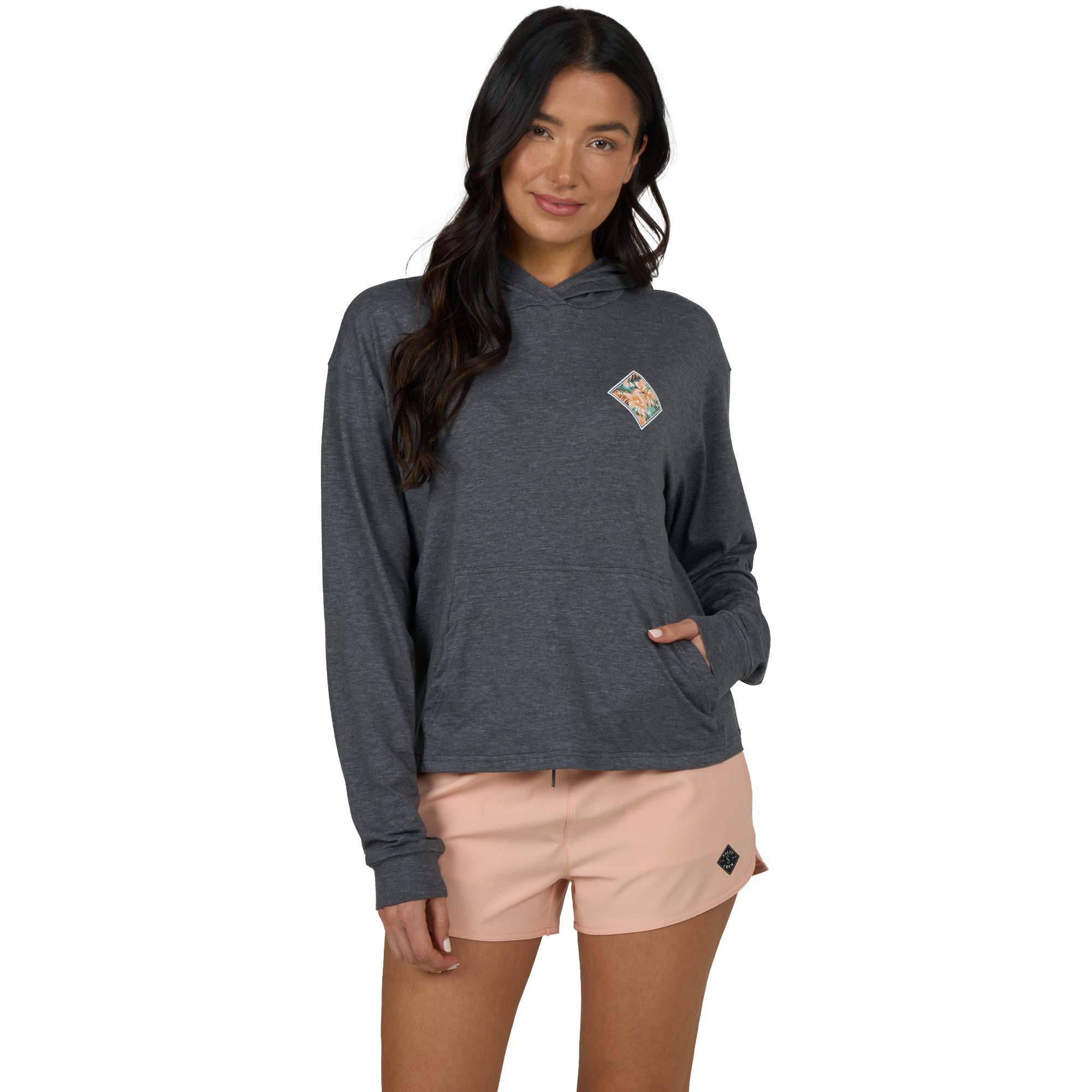 Бренд: Salty Crew Цвет: Charcoal Женская толстовка Salty Crew Tippet Fill Tech создана для комфортных и стильных приключений на солнце. Изготовленная из легкой эластичной ткани, она обеспечивает воздухопроницаемость и свободу движений для активных дней. Благодаря защите от солнца UPF 50+, она надежно защищает от непогоды, обеспечивая комфорт в течение всего дня. Карман-кенгуру добавляет непринужденности, а укороченный крой создает современный, привлекательный силуэт. Толстовка, украшенная принтами на груди и спине, воплощает идеальный баланс функциональности и стиля, вдохновленного побережьем.