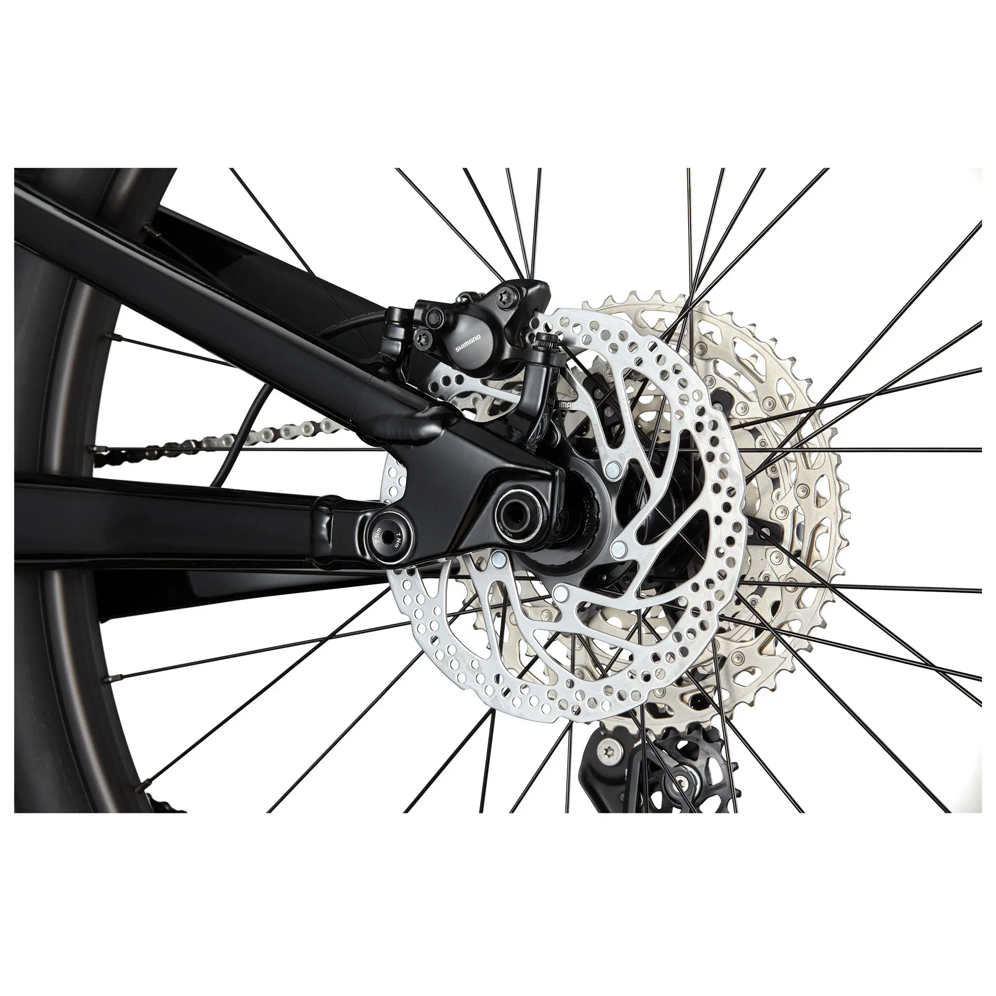Задняя втулка: Shimano MT410, сквозная ось 12 мм x 148 мм