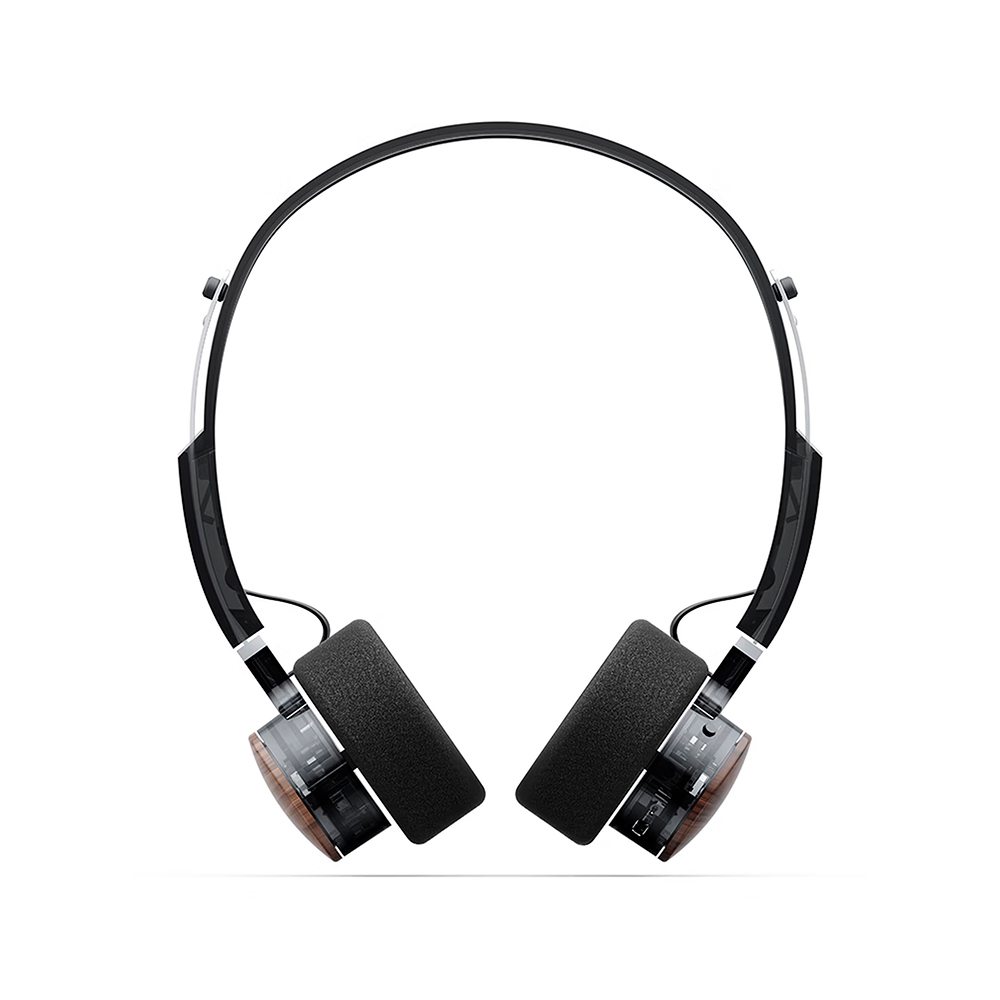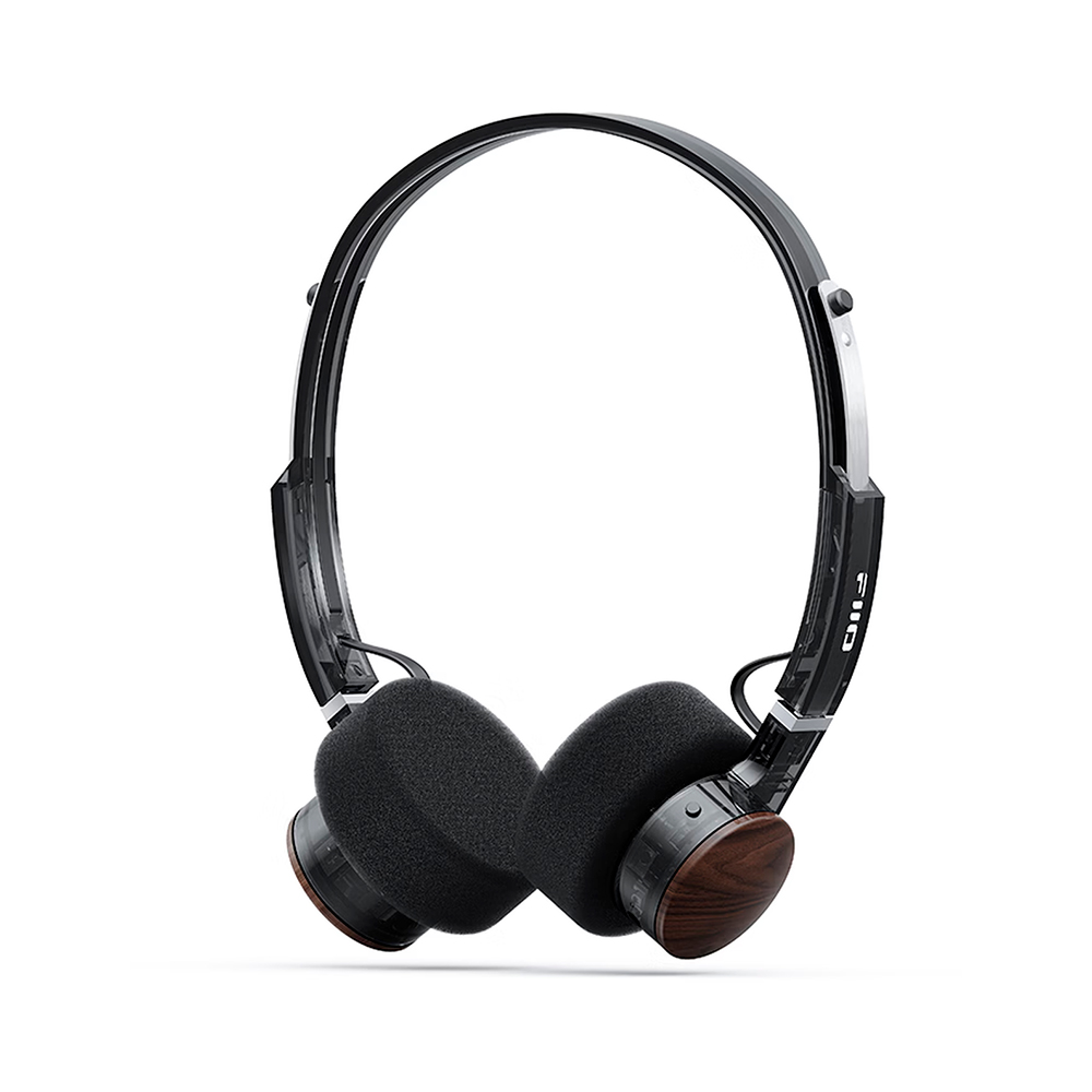 Прозрачные чашки, деревянные элементы и поворотные ручки управления создают уникальный визуальный стиль, вдохновлённый классическим оборудованием. Вес примерно ~92 г и мягкое давление на уши обеспечивают комфорт даже при длительном ношении.