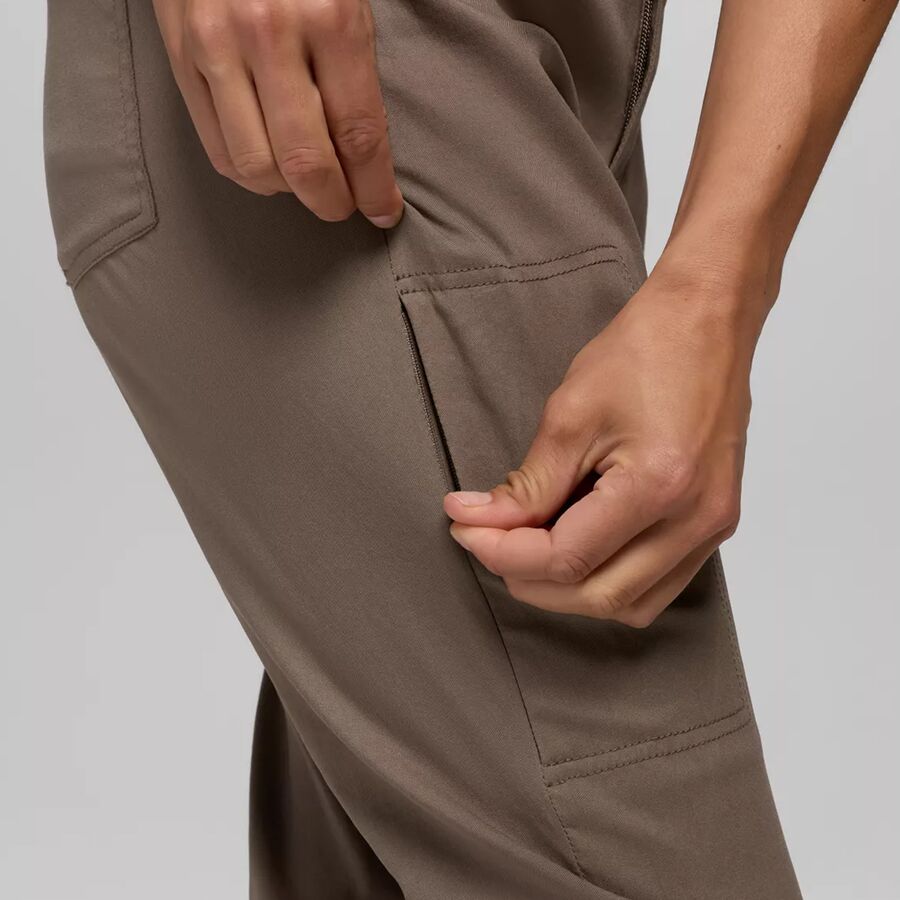 Фиксированный пояс с усиленными петлями для ремня гарантирует надежную фиксацию под рюкзаком, а многочисленные карманы - включая два боковых кармана, два задних накладных кармана и два кармана на молнии - позволяют надежно хранить необходимые вещи. Классическая застежка на пуговицу и ненавязчивый логотип делают эти брюки идеальным вариантом как для прогулок по пересеченной местности, так и для встреч после похода в городе.