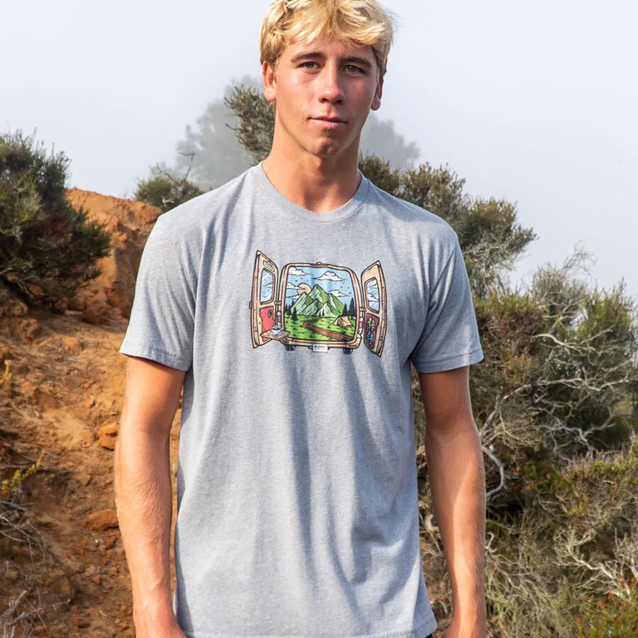 "Эта футболка идеально подходит для поездок на автомобиле, посиделок у костра или просто для повседневной носки. Смесь хлопка и полиэстера очень мягкая, а вдохновленный приключениями принт делает ее незаменимой для всех, кто любит открытые дороги."