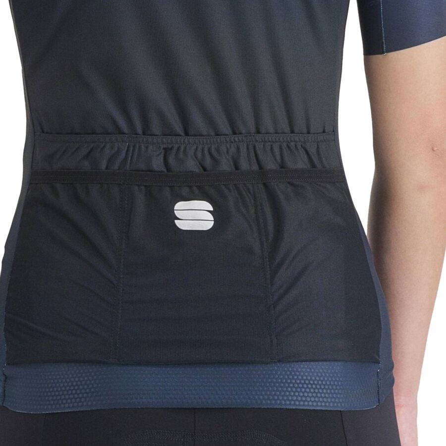 Независимо от того, отправляемся ли мы в любимую поездку по живописным тропам или находимся в середине нашего летнего велопохода, веломайка Sportful Flow Supergiara - наш лучший выбор. Ее конструкция из полиэстера и эластана мягкая и дышащая, а 6 карманов на спине вмещают более чем достаточно перекусов и снаряжения для нашего приключения.