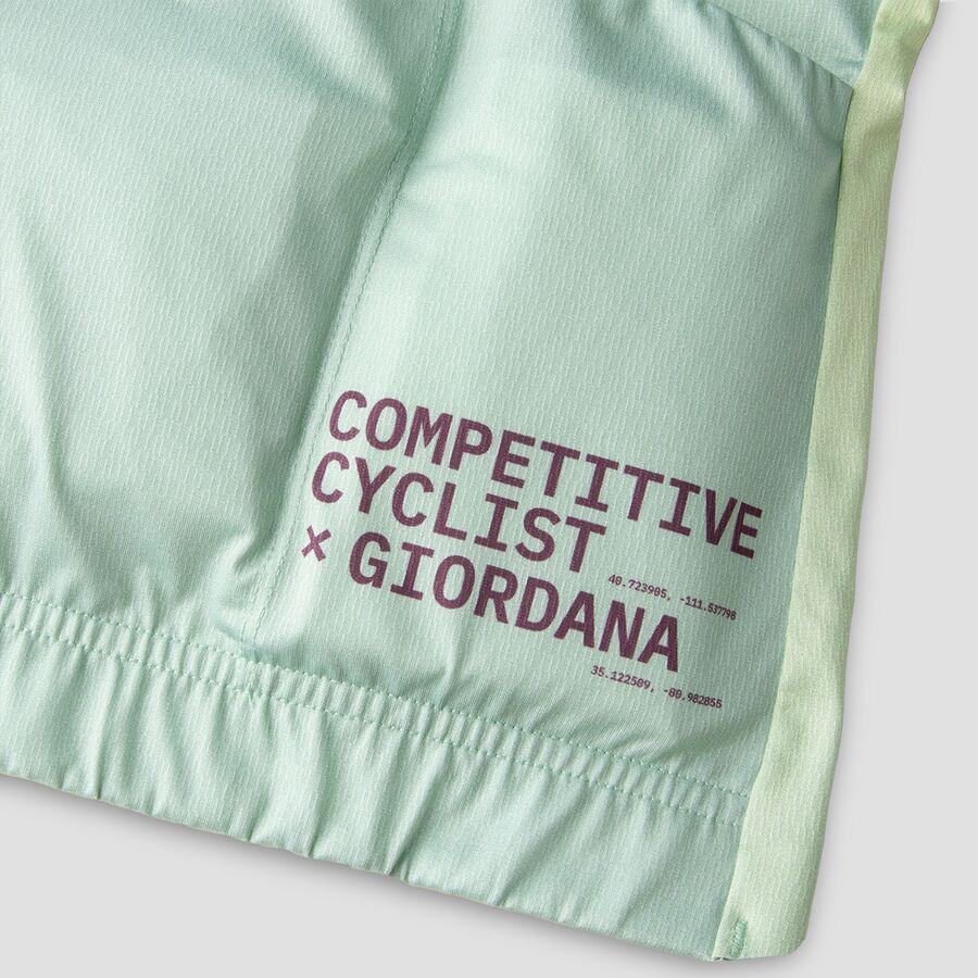 В сотрудничестве с Giordana мы создали веломайку Competitive Cyclist Race Day Short-Sleeve Jersey, которая отличается аэродинамическим дизайном и идеально подходит для гонок и быстрых тренировочных заездов. Уникальный состав ткани обеспечивает легкость и воздухопроницаемость, что гарантирует комфорт в любых условиях, а облегающий аэродинамический крой позволяет легко преодолевать сопротивление ветра. Мы также разработали эту майку с удлиненными рукавами, доходящими чуть выше локтей, для оптимизации аэродинамики и комфорта.