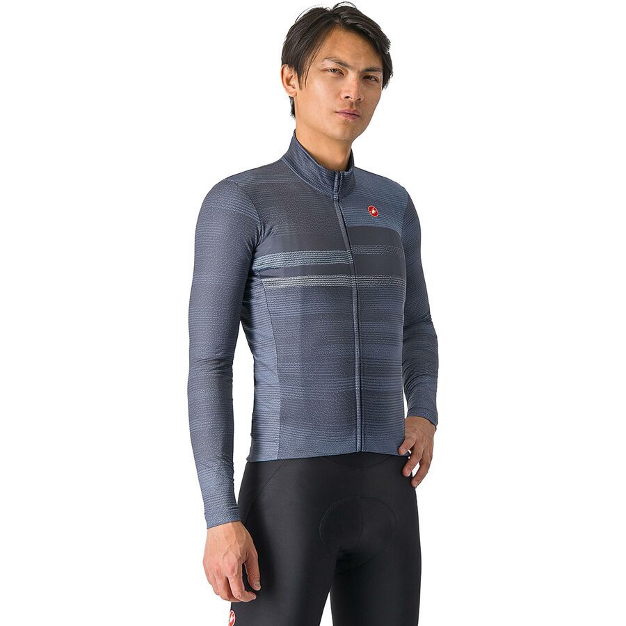 Созданный для поддержания оптимальной температуры во время поездки, веломайка Castelli Collapse с длинными рукавами - наш незаменимый помощник в умеренную погоду. Внутренняя сторона из мягкого флиса обеспечивает оптимальное тепло и комфорт, а ткань Warmer X-Stretch на рукавах и боках обеспечивает дополнительную эластичность, плотное прилегание и улучшает подвижность. Благодаря эластичной резинке на поясе и трем задним карманам мы можем уверенно хранить все необходимые вещи для длительной поездки, не беспокоясь о том, что майка будет сползать.