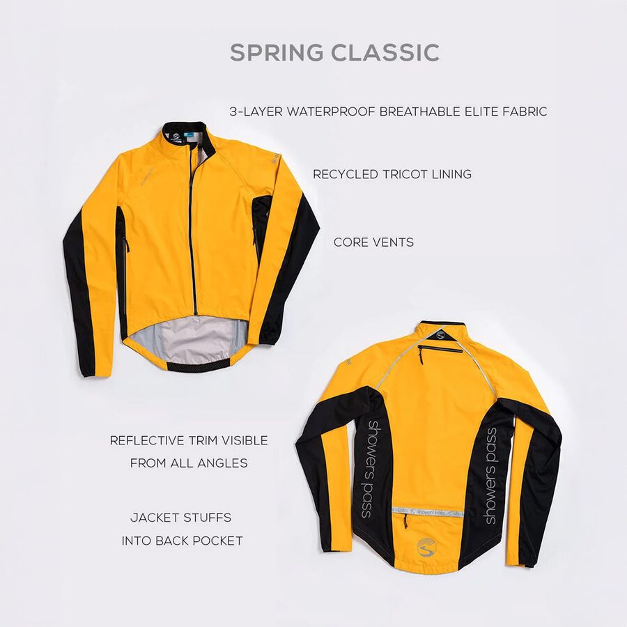 Мы ездим на велосипеде независимо от прогноза погоды, и куртка Spring Classic создана для того, чтобы мы могли двигаться в ветреную, дождливую и холодную погоду. Разработанная совместно с профессиональными велосипедистами, эта сверхлегкая куртка обеспечивает полную водонепроницаемость и ветрозащиту, оставаясь при этом достаточно дышащей для интенсивных тренировок. Трехслойная ткань Elite защищает от непогоды, а двухслойная вентиляция и вентиляционное отверстие в верхней части спины обеспечивают прохладу на сложных подъемах. Гоночный крой включает короткую переднюю часть, длинные рукава и удлиненную заднюю часть для полного покрытия в седле. Светоотражающая отделка повышает видимость, а задний карман на молнии служит также карманом для удобной упаковки. Независимо от того, тренируемся мы или едем на работу, эта куртка - наш незаменимый слой для поездок в плохую погоду.
