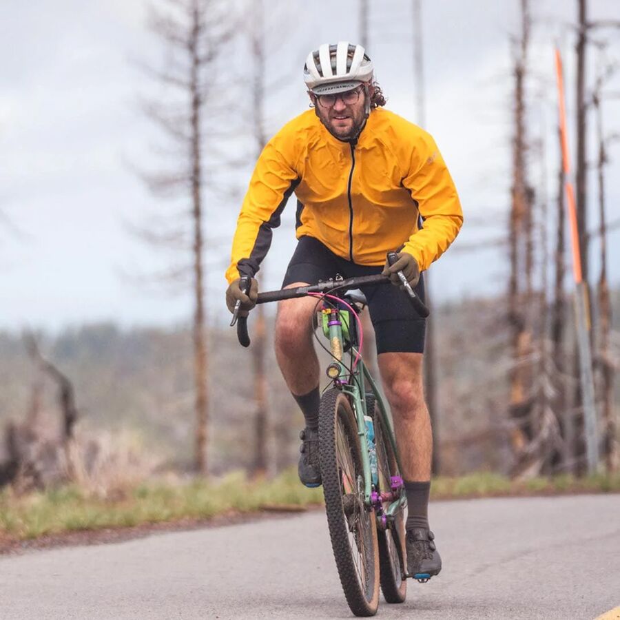 "Эта куртка идеально сочетает в себе защиту и воздухопроницаемость. Она полностью водонепроницаема и ветронепроницаема, но при этом позволяет теплу выходить через вентилируемые панели. Крой идеально подходит для езды на велосипеде, а задний карман служит также карманом для хранения вещей, что делает ее идеальной для непредсказуемой погоды."