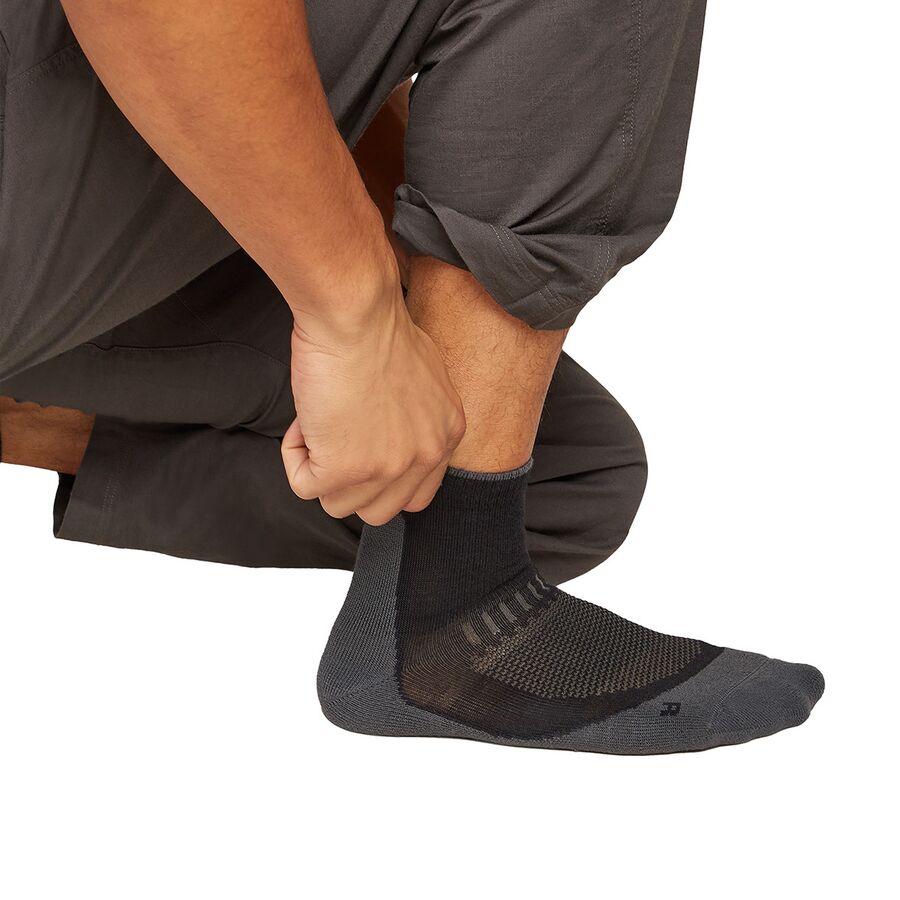 "Эти мини-носки идеально подходят для легких однодневных походов и повседневной носки. Благодаря бесшовному дизайну мыска они сохраняют мои ноги сухими и предотвращают появление мозолей, а мериносовая шерсть легко отводит влагу. Отличная поддержка для ваших ног в компактном исполнении!"