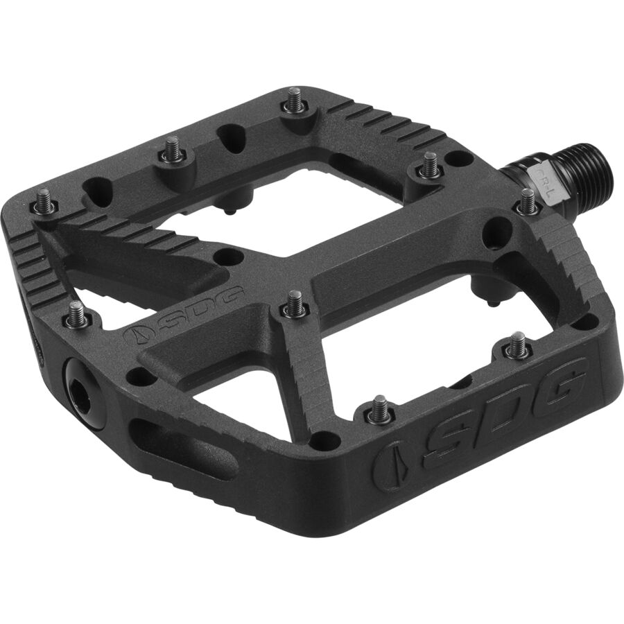Плоские педали для горного велосипеда - это здорово, но когда нога соскальзывает с педали при подъеме по сложной трассе, это просто ужасно. В педалях SDG Components Comp основное внимание уделяется созданию самых цепких педалей из доступных. Плоские педали имеют большую площадь основания для лучшего контроля, форму с наклонным и подрезанным профилем для улучшенного сцепления, а также 9 шипов с каждой стороны для надежной фиксации обуви на педалях. Педали Comp также созданы с учетом долговечности, используя легко заменяемую систему подшипников и щеток с хромомолибденовой осью.