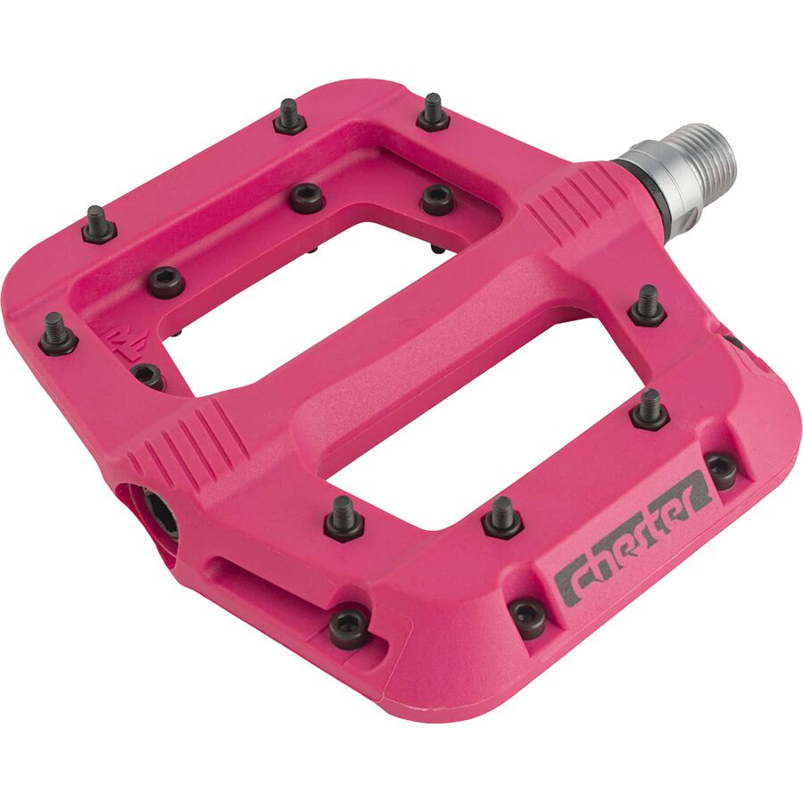 Независимо от того, катаемся ли мы по трамплинам или по узким тропам, педали Race Face Chester - одни из наших любимых. Изготовленные из легкого нейлонового композитного материала, педали Chester прочные, легкие и идеально подходят в качестве бюджетного варианта. Девять сменных шипов с каждой стороны, а также два формованных пластиковых шипа надежно фиксируют ноги, а платформа размером 105 x 100 мм идеально подходит для райдеров с маленьким и средним размером ноги.
