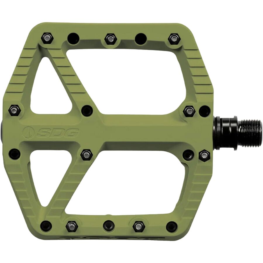 Плоские педали для горного велосипеда - это здорово, но когда нога соскальзывает с педали при подъеме по сложной трассе, это просто ужасно. В педалях SDG Components Comp основное внимание уделяется созданию самых цепких педалей из доступных. Плоские педали имеют большую площадь основания для лучшего контроля, форму с наклонным и подрезанным профилем для улучшенного сцепления, а также 9 шипов с каждой стороны для надежной фиксации обуви на педалях. Педали Comp также созданы с учетом долговечности, используя легко заменяемую систему подшипников и щеток с хромомолибденовой осью.