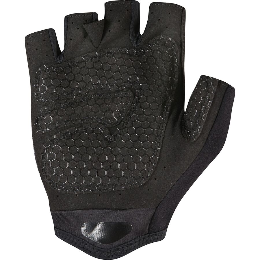 Короткие перчатки с пальцами, легкой, набивной тыльной стороной ладони, мягкой подкладкой на руке и микрозамшей на большом пальце.