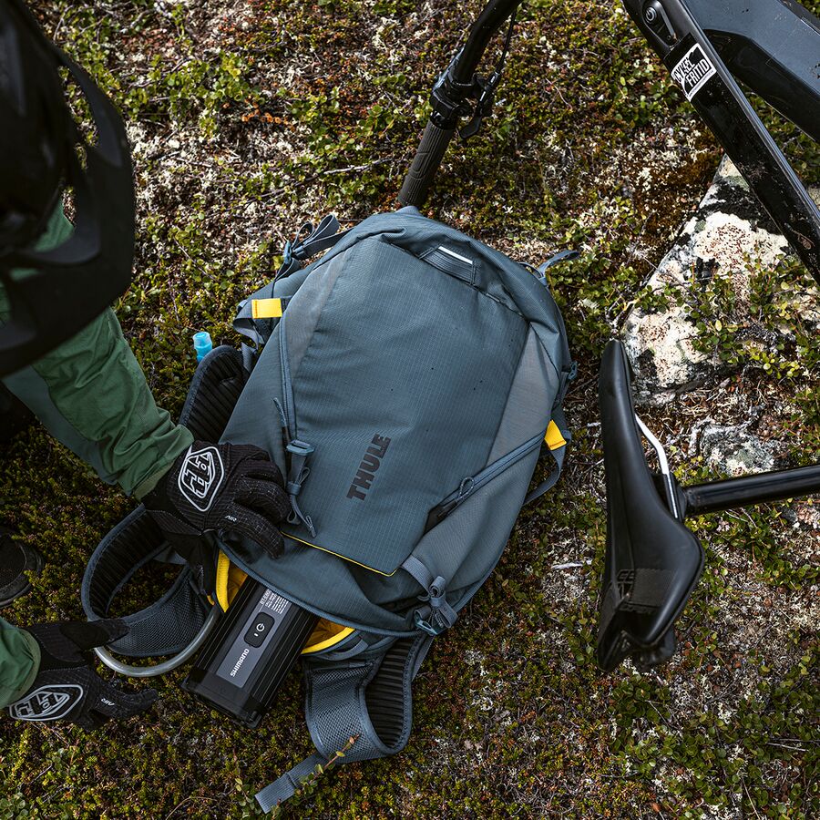 Благодаря резервуару HydraPak объемом 2,5 л и надежной низкопрофильной конструкции, рюкзак плотно прилегает к спине, не подпрыгивая, и комфортно удерживает воду и снаряжение на месте. Внутри есть специальный отсек для батареи электровелосипеда, внутренняя организация для инструментов и перекусов, а также внешние карманы, позволяющие легко достать необходимые вещи, такие как ветровка или энергетический батончик. Съемная защита спины Koroyd CE Level 1 обеспечивает легкую защиту от ударов, не стесняя движений. А благодаря дышащей сетчатой задней панели и встроенному дождевому чехлу, мы остаемся в прохладе и сухости от начала маршрута до пикника.