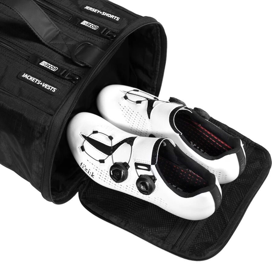 Изготовленная из износостойкой ткани CrossGuard, эта сумка сочетает в себе прочность и легкость, что делает ее надежным спутником в командном автомобиле или на обочине трассы. Шесть продуманно обозначенных отделений избавляют от необходимости гадать, что достать. Есть центральное отделение для обуви и шлема, специальный карман для мокрой одежды и четыре дополнительных отделения для футболок, шорт, перчаток и курток. Все находится на своем месте, и каждая деталь - от очень больших застежек-молний до универсальной ручки и плечевого ремня - разработана с учетом эффективности. Более двух десятилетий сумка SciCon Race Rain Bag является выбором профессиональных гонщиков, которые ценят надежность и организованность в любых погодных условиях.