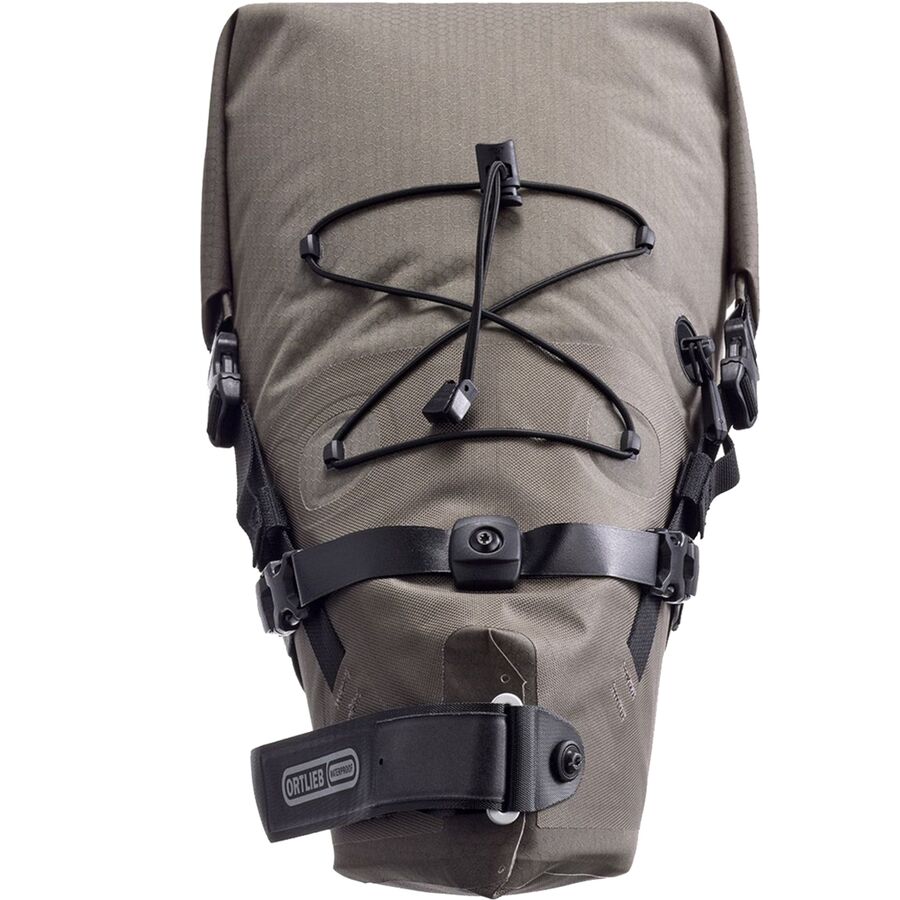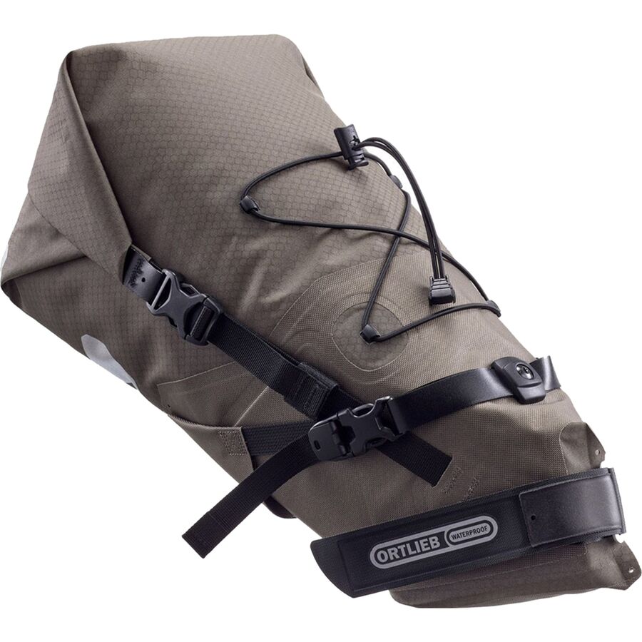 Оба размера сумки на подседельный штырь имеют застежки-рулоны для защиты от непогоды и изготовлены из водонепроницаемых материалов. Для среднего размера требуется всего 6 сантиметров свободного пространства под подседельным штырем, что позволяет использовать ее с регулируемыми подседельными штырями и небольшими рамами с ограниченным зазором. Напротив, для большего размера требуется два ремня, поэтому для поддержки больших грузов требуется 15 сантиметров свободного пространства под подседельным штырем. Оба варианта крепятся к направляющим подседельного штыря для дополнительной безопасности и имеют регулируемые ремни для уменьшения общего объема. Кроме того, у большого размера есть внешний эластичный шнур для крепления куртки, а у среднего - вертикальное крепление для заднего аварийного фонаря.
