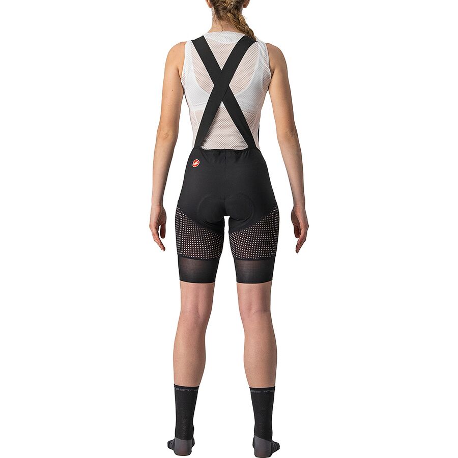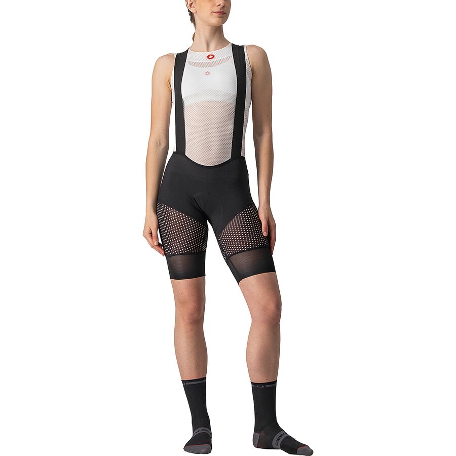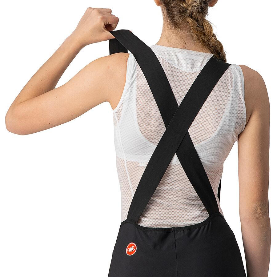 Велосипедные шорты Castelli Unlimited DT Liner Bib Short - идеальная подкладка под свободные шорты. Специальная женская бесшовная подушка сиденья Progetto X2 Air Donna обеспечивает комфорт во время езды, независимо от расстояния, а перфорированные вставки на штанинах обеспечивают охлаждение и вентиляцию. Конструкция с удлиненными лямками спереди и сзади позволяет легко перекрещивать их во время поездки, например, чтобы сходить в туалет.