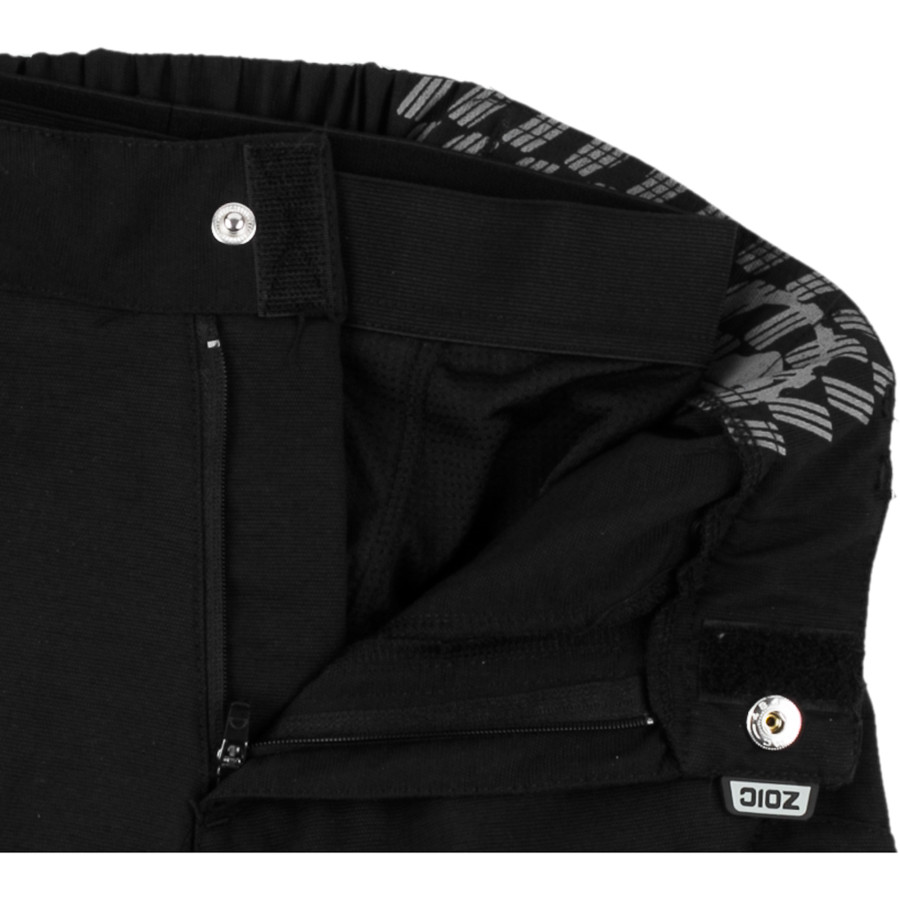 В них даже есть специальный карман для телефона или MP3-плеера с отверстием и петлей для провода наушников, чтобы избежать зацепов. Что касается посадки, манжеты Ether доходят прямо до колена. Отверстия для ног достаточно свободные, чтобы не мешать наколенникам. ZOIC также предусмотрела регулировку талии, чтобы вы могли точно настроить посадку под свои предпочтения. Плоский передний пояс застегивается на стандартную молнию и кнопки. Велосипедные шорты ZOIC Ether Jr. выпускаются в размерах от S до XXL. Они доступны в черном и темно-синем цветах.