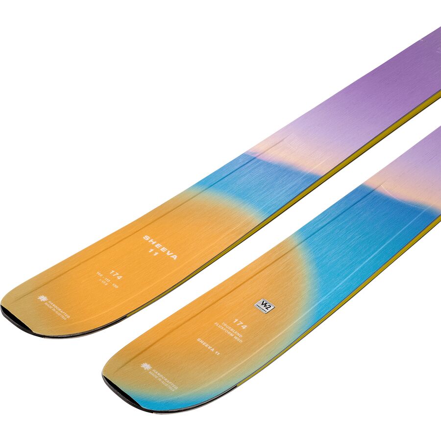 Нам нравятся Sheeva 11, потому что они серьезно относятся к фрирайду, но не забывают о веселье. Энергичный сердечник из бука/тополя/павловнии обеспечивает баланс между гашением и резкостью, а ламинат FluxForm Titanal добавляет сцепление и стабильность. Его частично двойной хвост облегчает выполнение поворотов, давая нам свободу для покорения широких трасс или для резких разворотов и скольжения по пухляку.