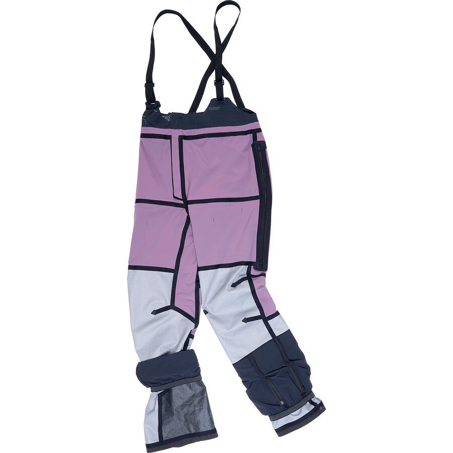 Продуманный дизайн продолжается функциональными деталями, адаптированными для ски-тура. Двойные карманы для лавинного маяка с точками крепления надежно фиксируют лавинное снаряжение, а вентиляционные отверстия на бедрах отводят тепло при больших подъемах. Сверхдышащая панель комбинезона с лазерной резкой и поясничной вентиляцией делает подъем более комфортным, а откидная задняя часть добавляет удобства без ущерба для защиты. Внизу - интегрированные гетры с дополнительным ремешком. Сквозные отверстия предотвращают попадание снега, а усиленный кевларом нижний край защищает от ударов кантами лыж, кошек и неровной местности.