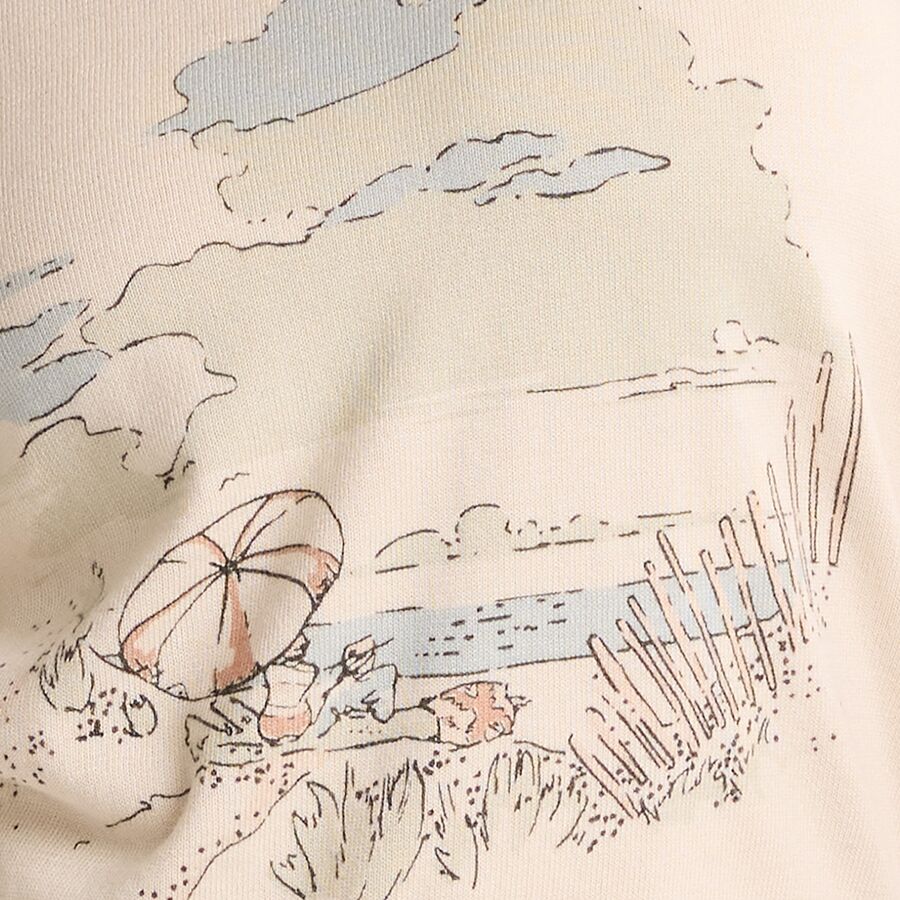 Пуловер Coastal Cotton - мой любимый для прохладных летних вечеров. Он легкий и дышащий, идеально подходит для комфортного пребывания, когда температура падает. Графический рисунок с закатом на побережье добавляет стиля, не будучи слишком броским, а короткие рукава делают его отличным вариантом для многослойной одежды или ношения отдельно. Я сочетаю его с шортами или джинсами для расслабленного, непринужденного образа.