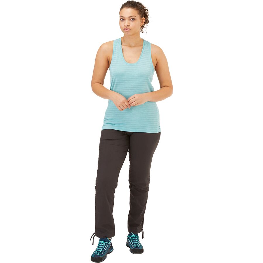 "Этот жилет - мой незаменимый помощник для походов в теплую погоду. Ткань из переработанного полиэстера мягкая и легкая, а вентилируемая конструкция обеспечивает прохладу даже при интенсивном темпе. Обработка Polygiene - дополнительный бонус для сохранения свежести во время многодневных приключений. Он идеально подходит для ношения поверх спортивного бюстгальтера или в составе легкой многослойной системы."
