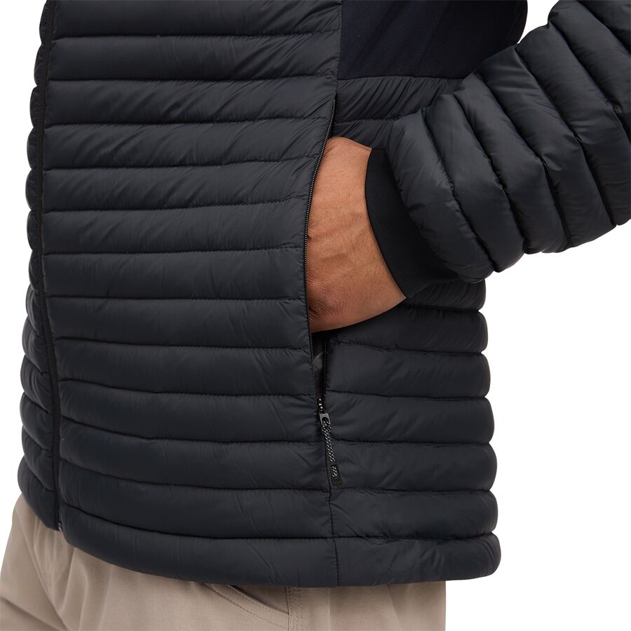 Нам нравится, как гусиный пух плотностью 700 сохраняет серьезное тепло, не добавляя лишнего объема, а эластичные флисовые вставки под мышками дают нам свободу движений, позволяют тянуться, карабкаться или надевать несколько слоев одежды. Внешняя оболочка из нейлона 20D делает куртку сверхлегкой и удобной для упаковки, а водоотталкивающая обработка DWR помогает отводить неожиданную влагу. Благодаря утепленному капюшону, эластичным трикотажным манжетам и трем карманам на молнии, эта куртка готова к любым задачам в холодную погоду, большим или малым.