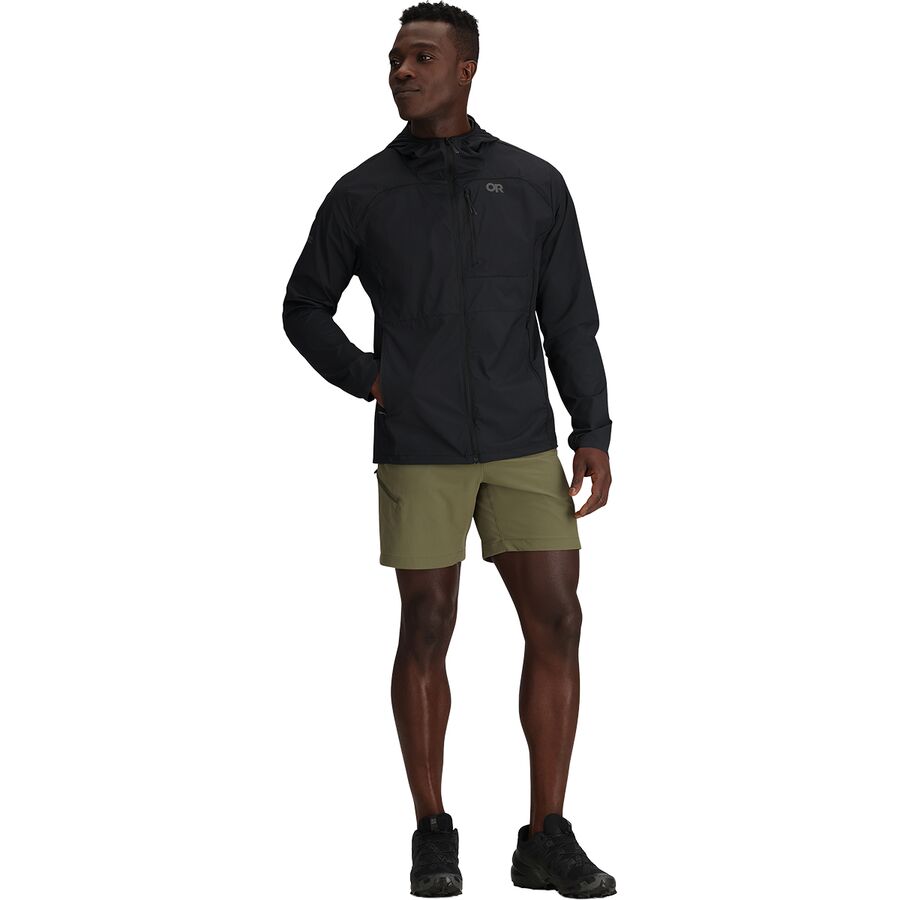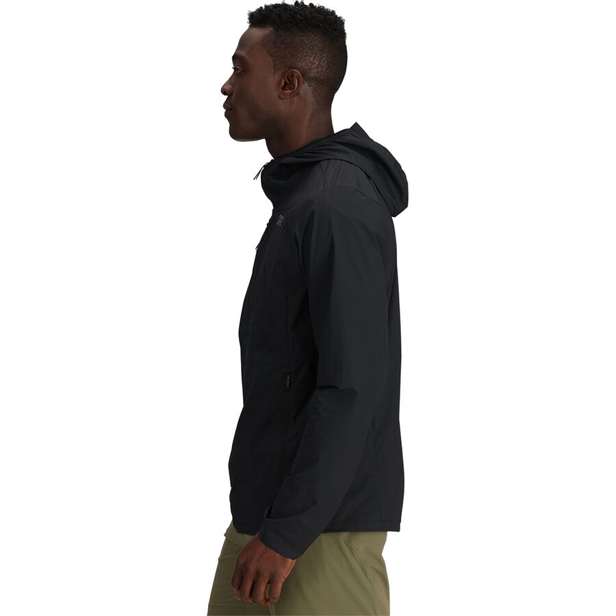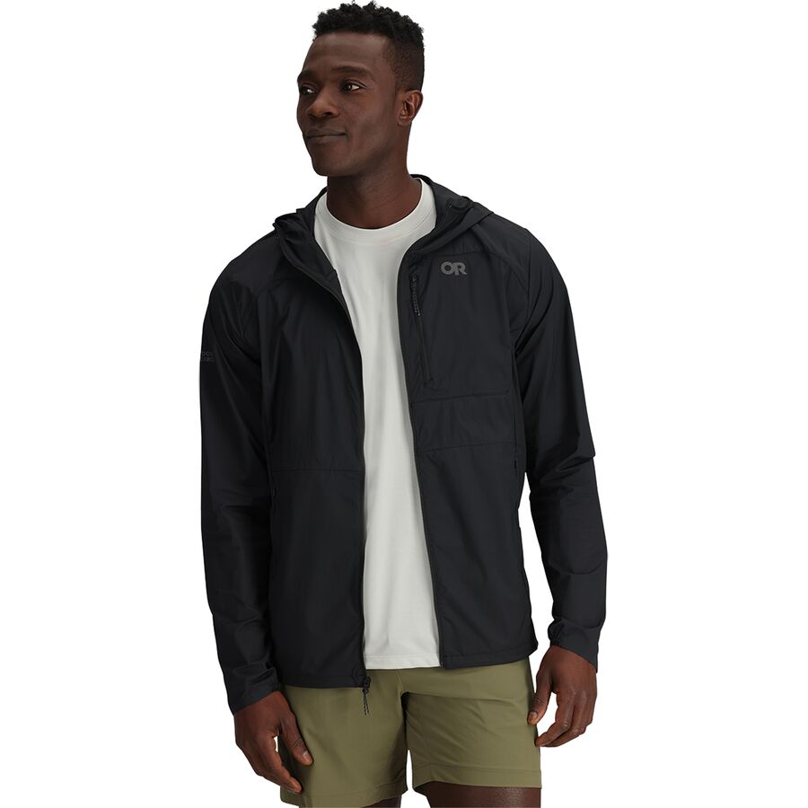 На ветреных лыжных трассах и продуваемых ветром пляжах куртка Shadow Wind Hooded Jacket обеспечивает идеальную защиту от ветра. Компания Outdoor Research оснастила эту ветровку дышащей эластичной тканью, поэтому мы не будем перегреваться во время движения, и наши движения не будут скованы жесткой защитной верхней одеждой. Приталенный крой подчеркивает эластичность ткани, повторяющей движения. А в смешанных погодных условиях эта куртка обеспечит нам все необходимое: капюшон сворачивается в воротник и раскладывается, когда нам нужна дополнительная защита, а сама куртка складывается в нагрудный карман, когда нам достаточно тепло, и мы ее не носим.