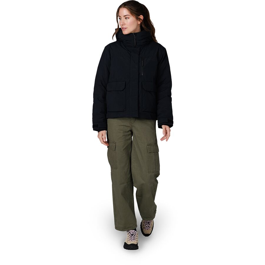 Созданная с использованием экологически чистого пуха плотностью 700+, эта куртка обеспечивает превосходную теплоизоляцию без излишней громоздкости. Водостойкая внешняя оболочка из переработанного нейлона обеспечивает защиту от ветра и влаги, сохраняя при этом мягкий, удобный для города силуэт. Практичные функции, такие как карманы на молнии, регулируемый капюшон и низ, а также внутреннее отделение для хранения вещей, позволяют легко оставаться в тепле и организованно - где бы ни находилась зима.