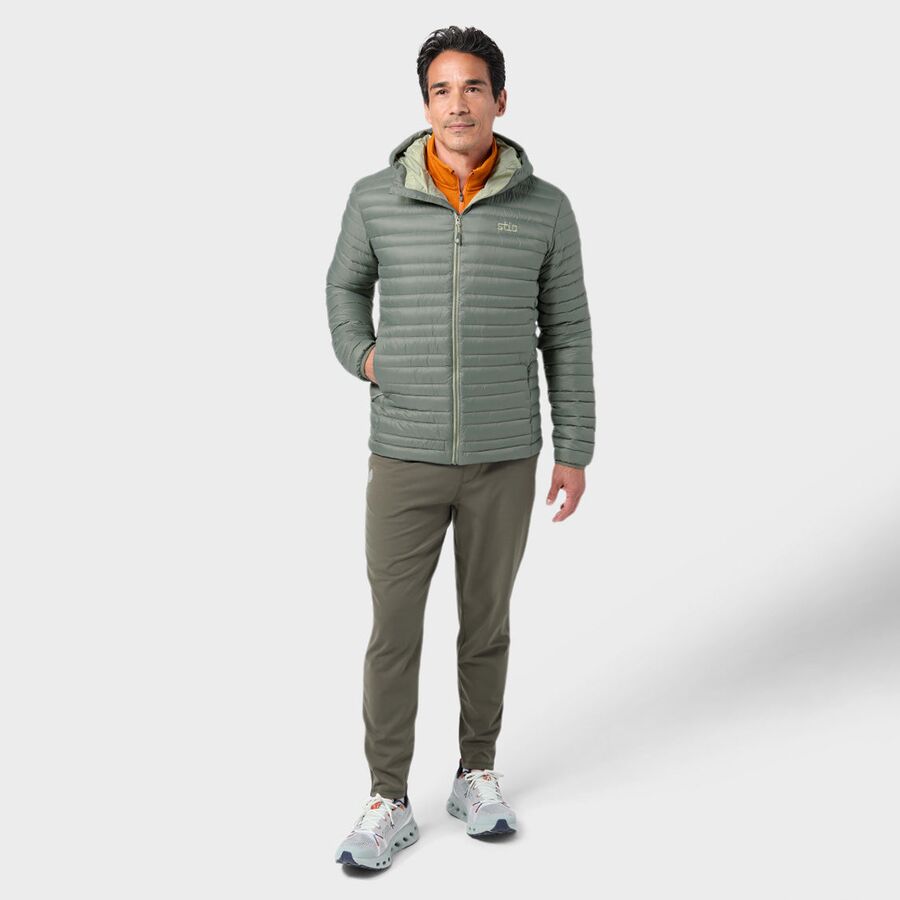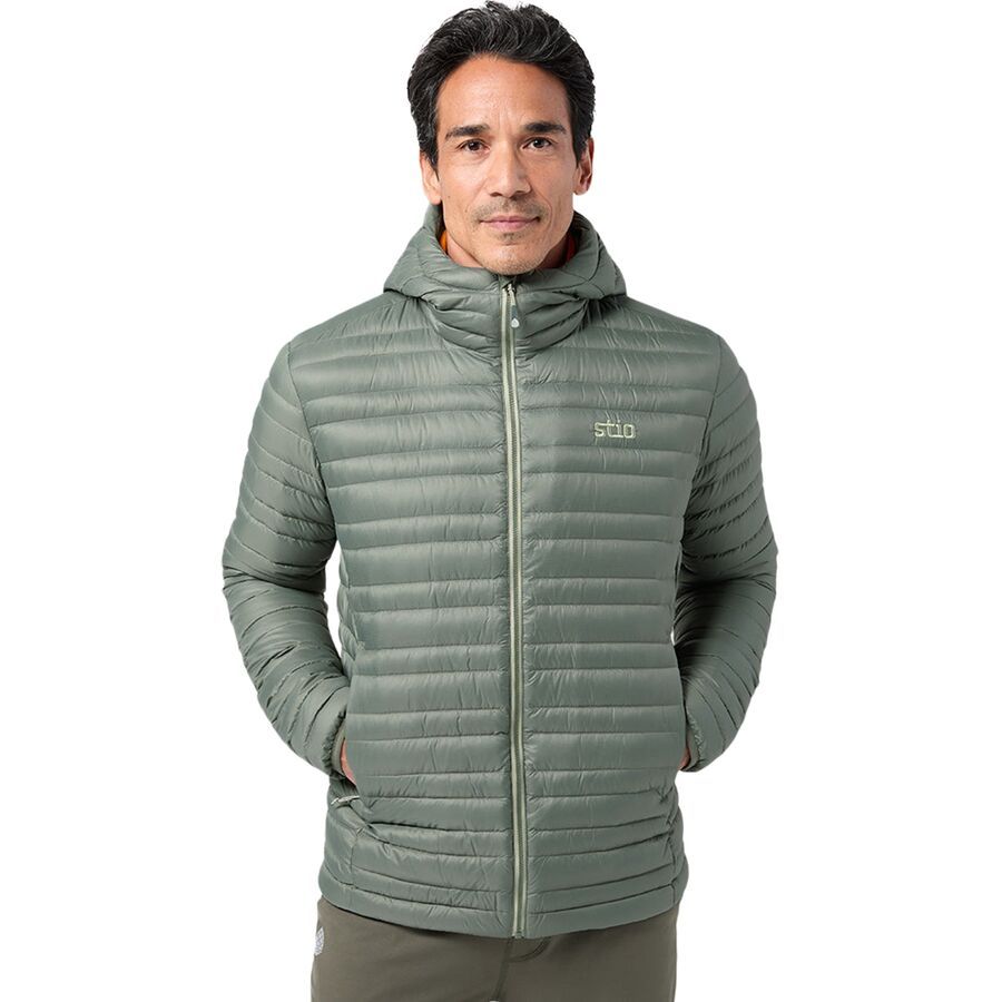 Когда наступает непредсказуемая горная погода, куртка Stio Pinion Down Hooded Jacket - наш незаменимый слой для легкого тепла и защиты. Изготовленная из 100% переработанной ткани Pertex Quantum, куртка прочна, износостойка и имеет водоотталкивающее покрытие DWR. Внутри находится утеплитель HyperDRY плотностью 800 наполнителей, обеспечивающий надежное тепло без увеличения веса, согревая нас как во время походов по дикой местности, так и во время поездок по городу. Высокий воротник и регулируемый капюшон улучшают обзорность и защищают от непогоды, а обтекаемый низ и внутренний карман позволяют легко упаковать куртку для любого приключения.