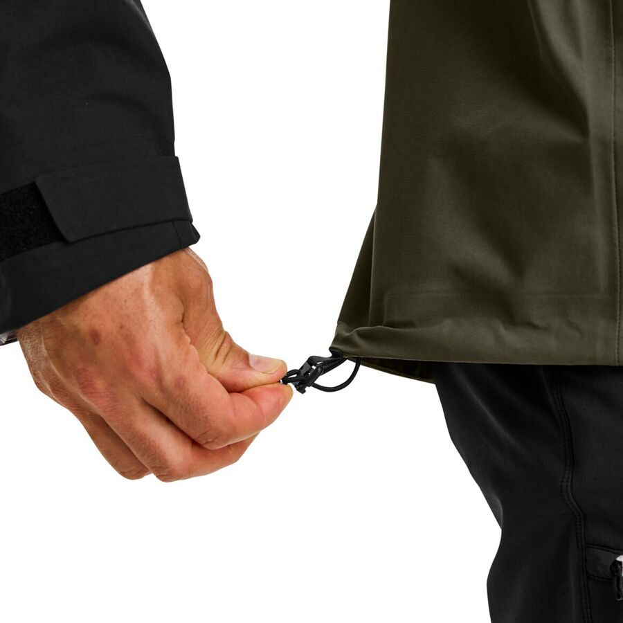 "Эта куртка создана для больших горных походов, обеспечивая полную защиту от непогоды в легкой, компактной конструкции. Трехслойная конструкция блокирует ветер и дождь, оставаясь при этом достаточно дышащей для интенсивных тренировок. Эргономичный крой и регулируемые элементы позволяют легко двигаться, будь то подъем по хребту или спуск в непредсказуемых условиях."
