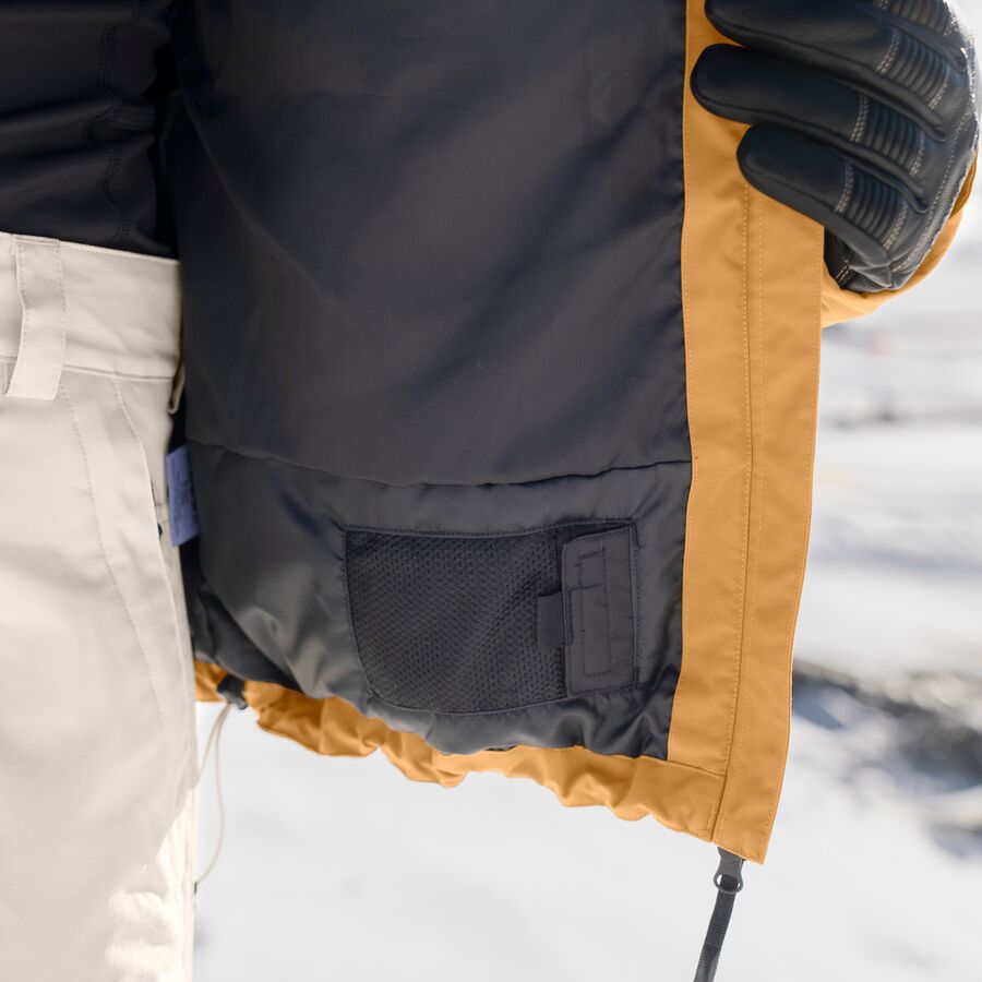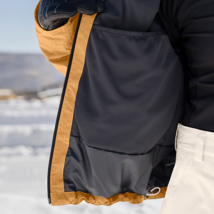 Подкладка из переработанного полифила плотностью 40 г обеспечивает легкое тепло без лишнего объема, а ткань, одобренная bluesign, обеспечивает экологичность. Капюшон, совместимый со шлемом, имеет структурированный козырек для защиты от непогоды, не ограничивая обзор, а манжеты на запястьях, регулируемые манжеты и затягивающийся низ защищают от глубокого снега и ледяных порывов. Внутренние сетчатые карманы и нагрудный карман для медиаустройств позволяют хранить необходимые вещи в безопасности и под рукой. Вперед!