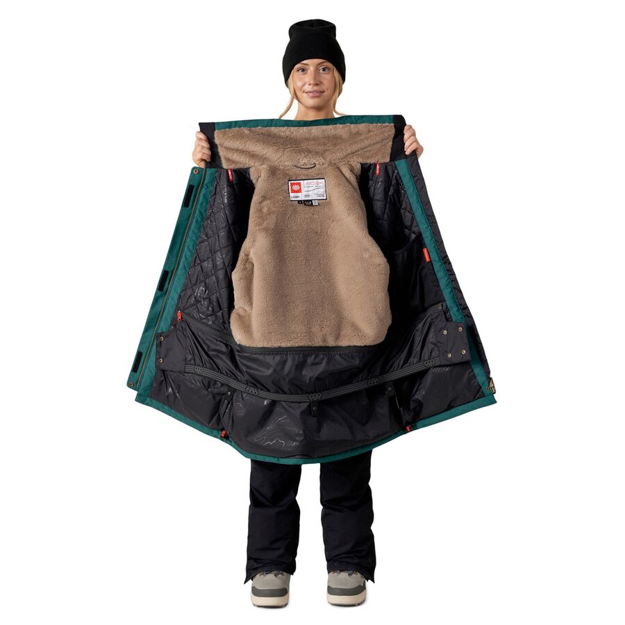 Карманы: [внешние] 2 кармана на молнии для рук, 1 на груди на молнии, 1 карман на липучке для ски-пасса [внутренние] 1 карман для очков