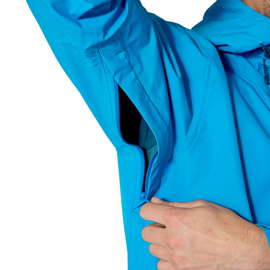 Это моя любимая дождевая куртка для походов и повседневной носки. Ткань Pertex Shield легкая, но при этом обеспечивает отличную защиту, а вентиляционные отверстия под мышками помогают воздухопроницаемость при сложных подъемах. Она компактно складывается, поэтому я всегда могу иметь ее под рукой, когда погода меняется. Благодаря регулируемому капюшону, ветрозащитной планке и удобной посадке, это универсальный слой одежды для любого приключения в дождливую погоду.