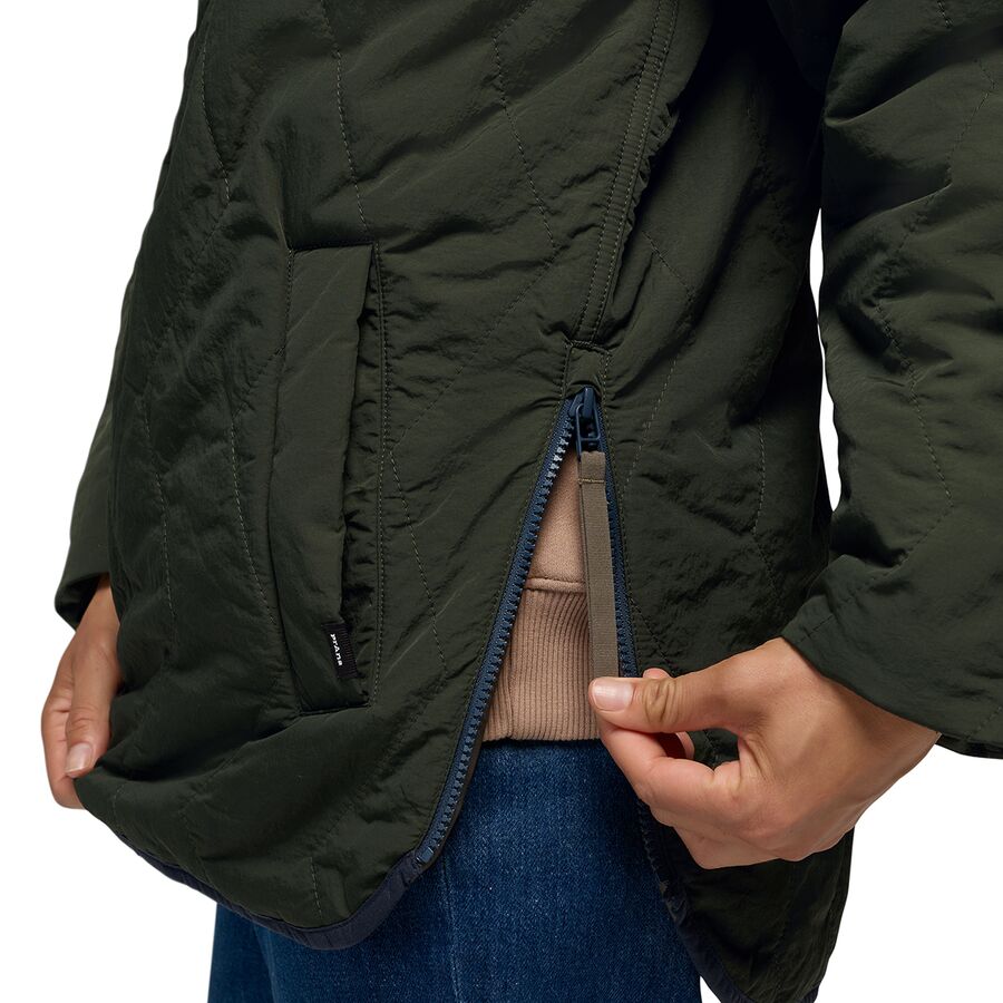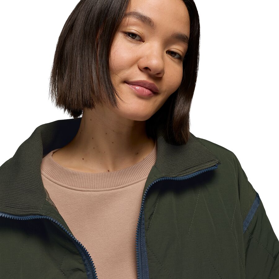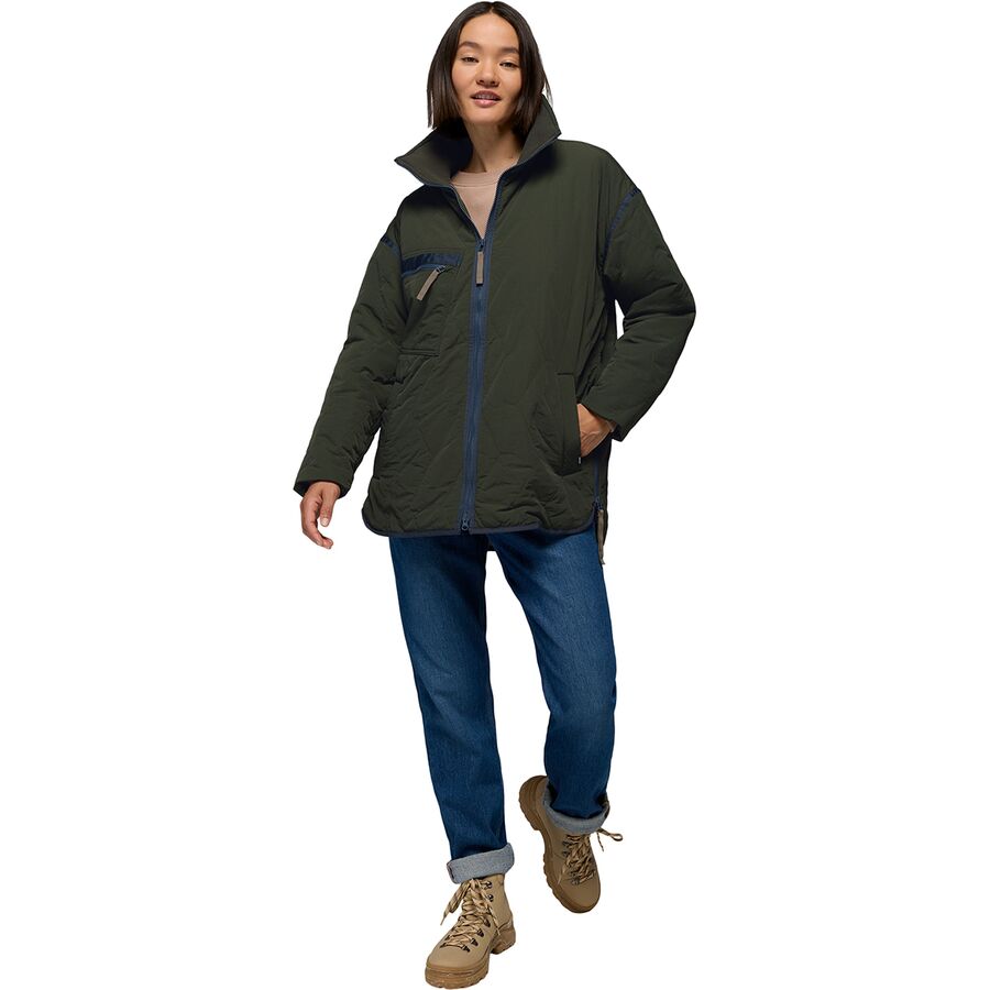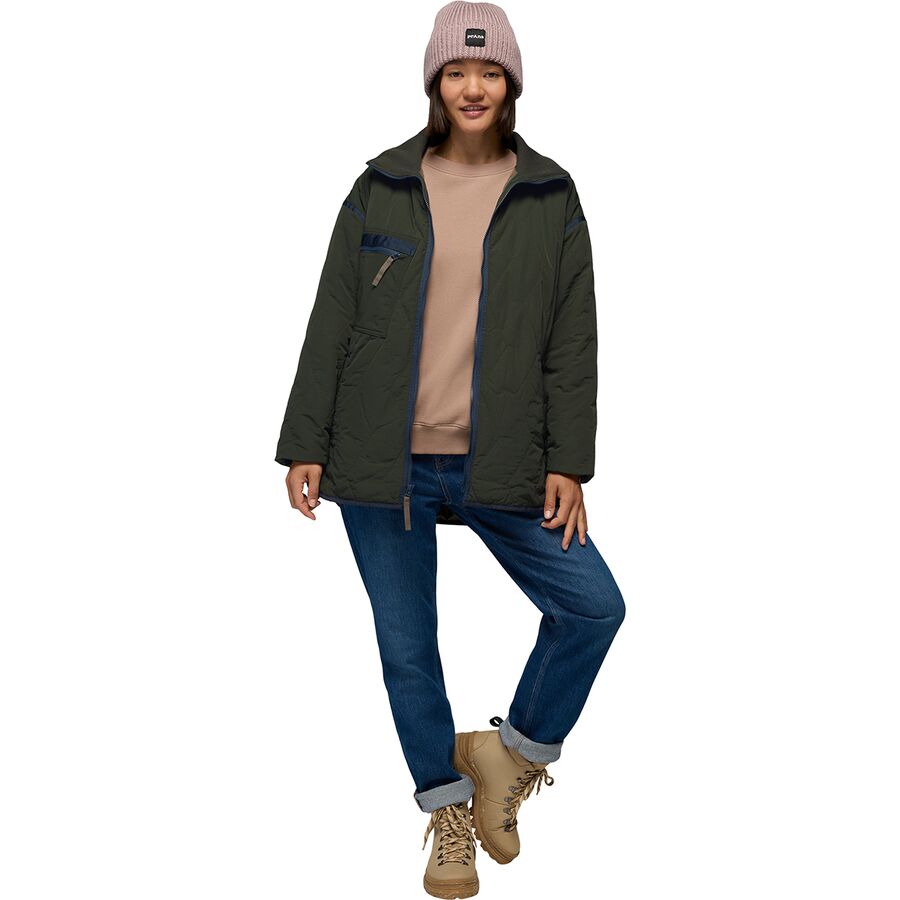 Уютная и экологичная куртка Encinitas Field Coat от prAna согревает нас изнутри и снаружи. Синтетический наполнитель удерживает тепло тела, а водоотталкивающая пропитка DWR защищает от дождя и снежной бури, которые могут встретиться нам по дороге на работу.