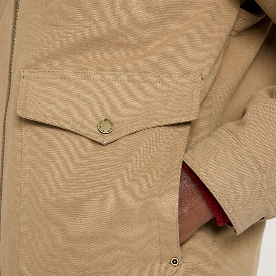 Эта куртка сочетает в себе проверенную временем прочность и культовый стиль одежды для ранчо, изготовлена из плотного хлопкового холста плотностью 12 унций, который со временем становится мягче и приобретает нужную форму. Внутри верхняя часть спины отделана фланелью Mt. Hood от Pendleton - мягкой шерстяной тканью, которая обеспечивает тепло именно там, где это необходимо. Куртка дополнена вельветовым воротником, прошитыми деталями и удобными карманами, что делает ее идеальным выбором для холодных утренних часов, осенних переходов и всего, что между ними.