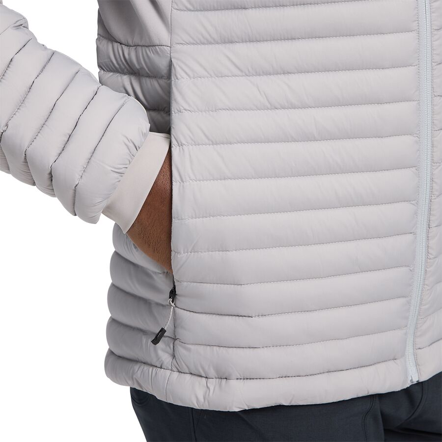 Нам нравится, как гусиный пух плотностью 700 сохраняет серьезное тепло, не добавляя лишнего объема, а эластичные флисовые вставки под мышками дают нам свободу движений, позволяют тянуться, карабкаться или надевать несколько слоев одежды. Внешняя оболочка из нейлона 20D делает куртку сверхлегкой и удобной для упаковки, а водоотталкивающая обработка DWR помогает отводить неожиданную влагу. Благодаря утепленному капюшону, эластичным трикотажным манжетам и трем карманам на молнии, эта куртка готова к любым задачам в холодную погоду, большим или малым.