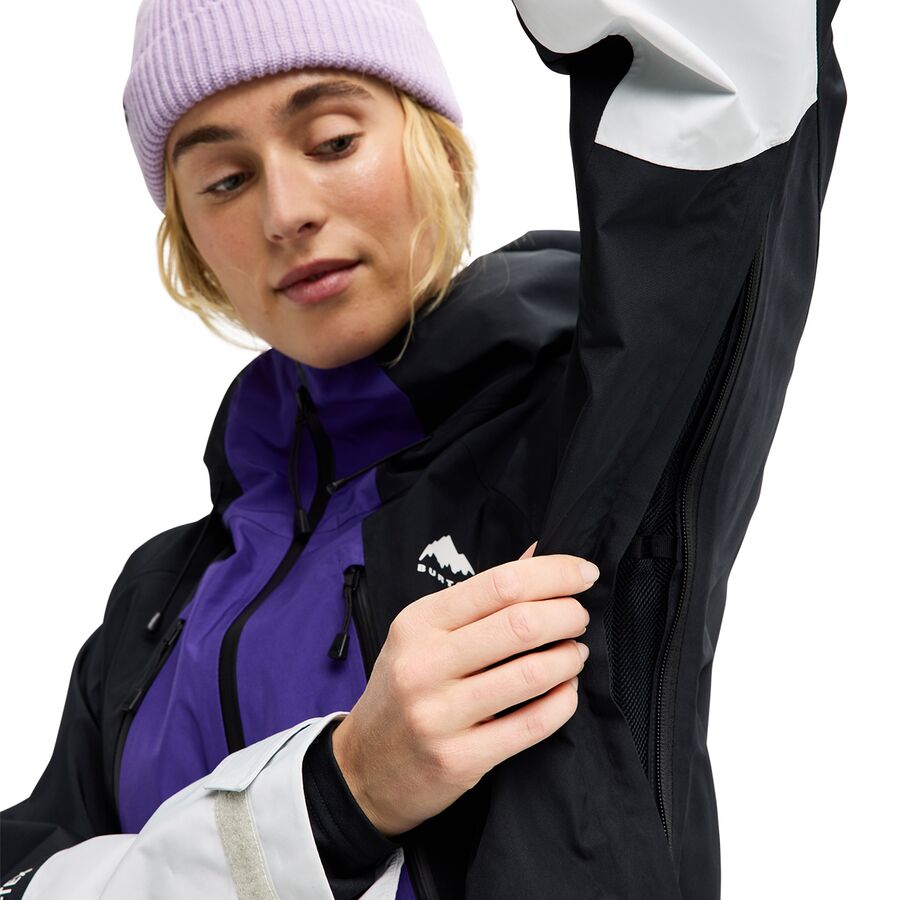 Полностью проклеенные швы и подкладка из нейлоновой тафты обеспечивают комфорт и дополнительную защиту от непогоды, а капюшон Contour регулируется спереди и сзади для плотного прилегания к шлему. Когда нужно охладиться после катания по дорожкам или в скейт-парке, сетчатые вентиляционные отверстия на молнии под мышками открываются для быстрого облегчения. Эргономичная поясная манжета с соединением куртки и брюк и застежками-кнопками предотвращает попадание снега внутрь, а прочные молнии YKK и регулируемые манжеты дополняют конструкцию, готовую к любым непогодам.