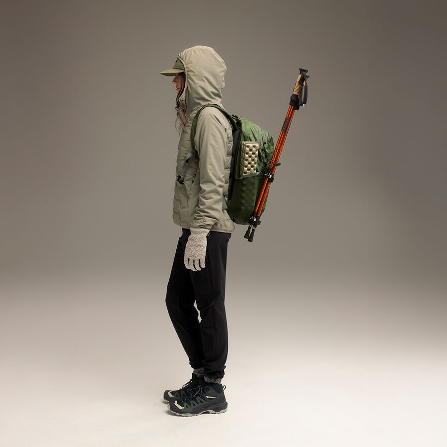 Внутри находится гибрид из пуха плотностью 700, Down Defender и утеплителя Primaloft Active Evolve, сочетающий в себе лучшие качества: легкий объем, влагостойкость и воздухопроницаемость, сохраняющую тепло и свободу движений. Переработанный полиэстер рипстоп обеспечивает прочность и меньший вес, а компактный, компактный дизайн делает ее идеальным слоем под верхней одеждой или самостоятельным элементом гардероба в прохладные, сухие дни.